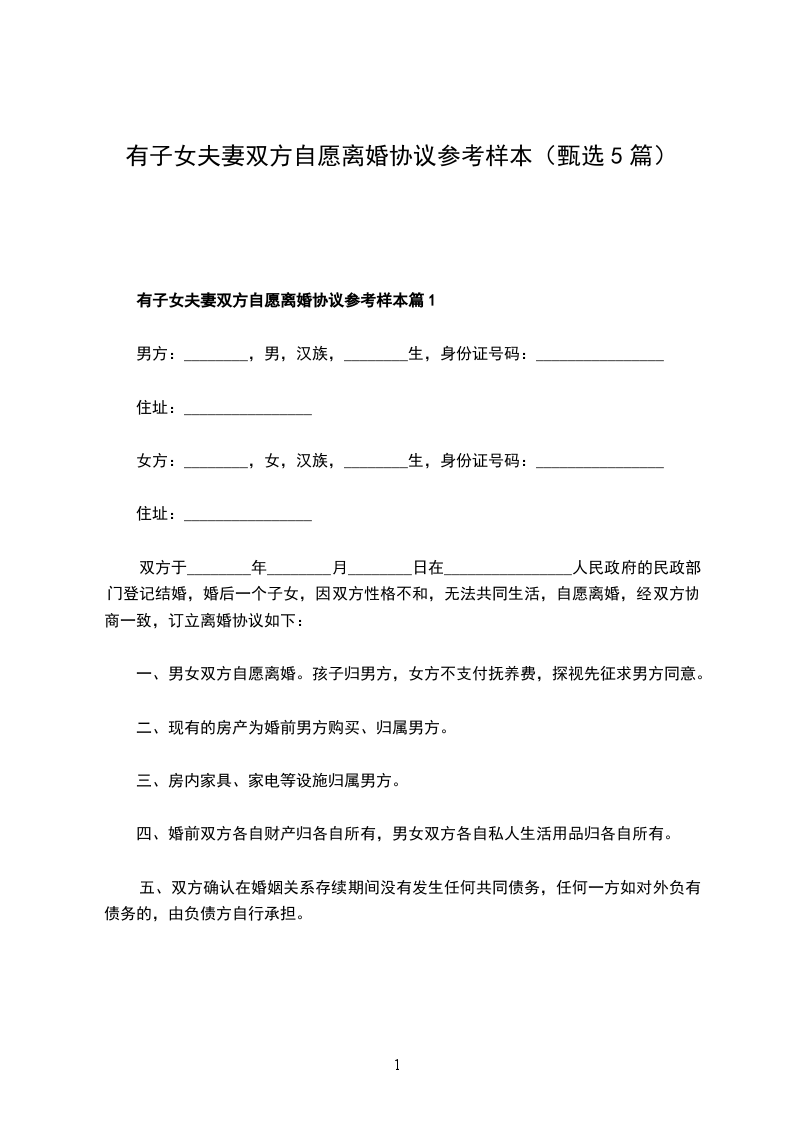 有子女夫妻双方自愿离婚协议参考样本篇1
