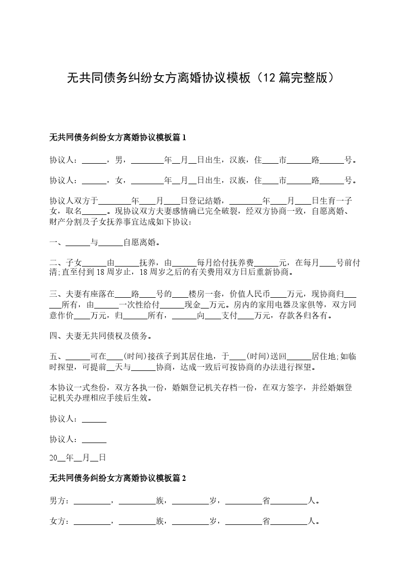 1、甲乙双方确认在婚姻关系存续期间无发生的共同债务。
