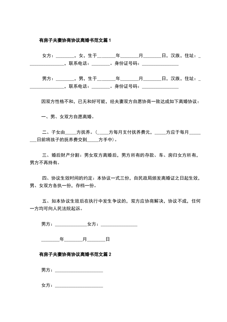 八、本协议一式三份,男、女双方各执一份,婚姻登记机关存档一份,自婚姻登记机颁发《离婚证》之日起生效。九、如本协议生效后在执行中发生争议的,双方应协商解决,协商不成,任何一方均可向相关人民法院起诉。