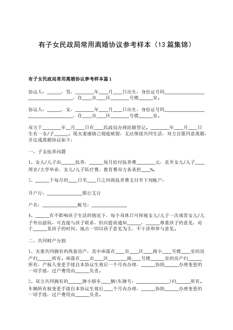 十、本协议一式_____份,双方各执_____份,民政局存档_____份。