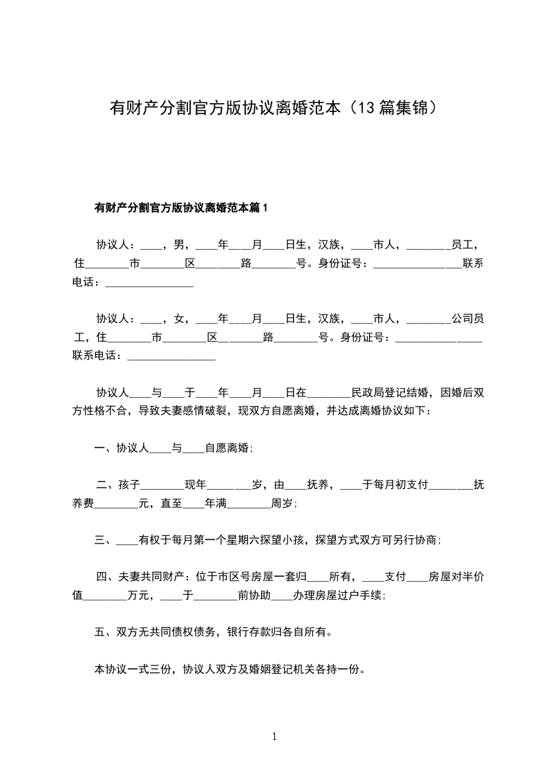有财产分割官方版协议离婚书样本篇1