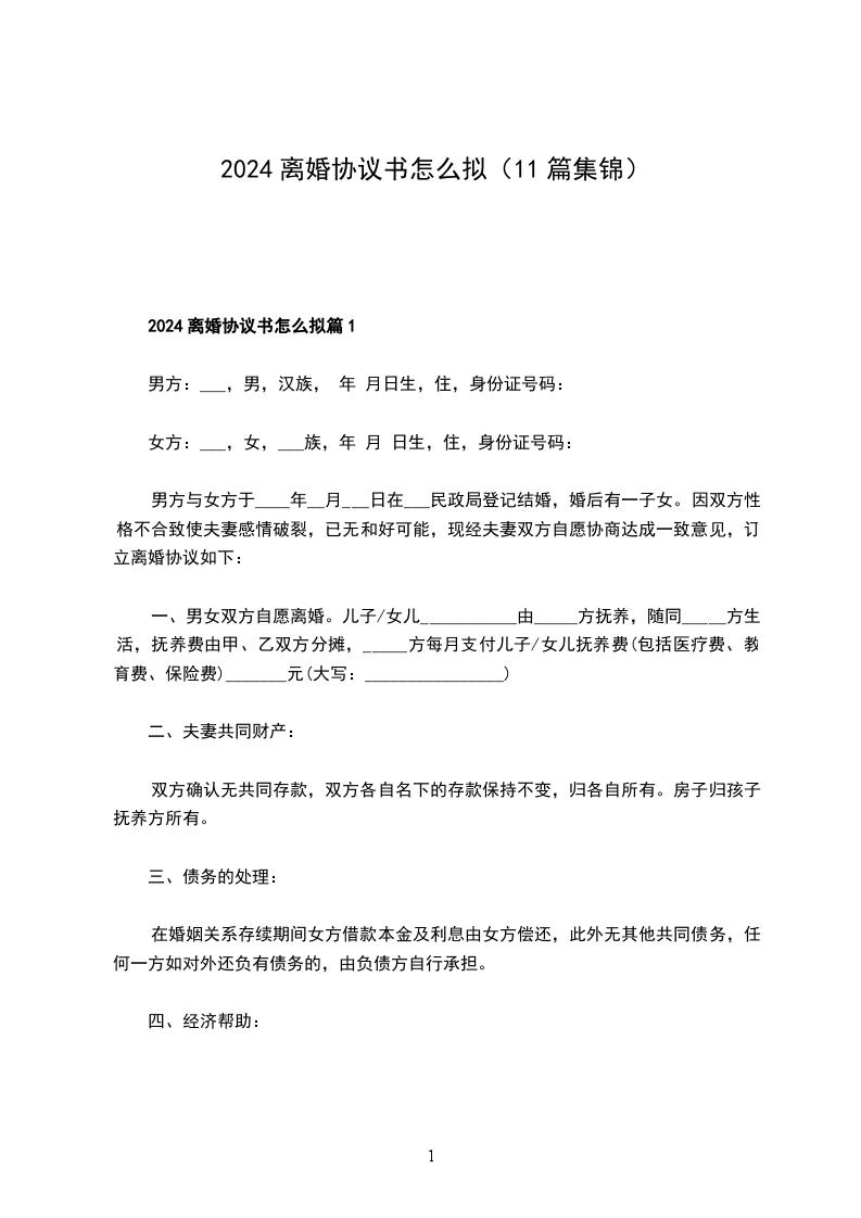 2024年男方离婚协议怎么拟篇11
