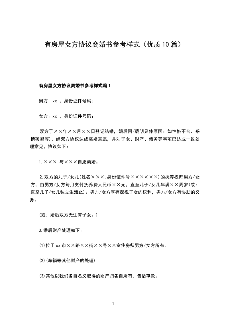 有房屋女方协议离婚书样本篇10