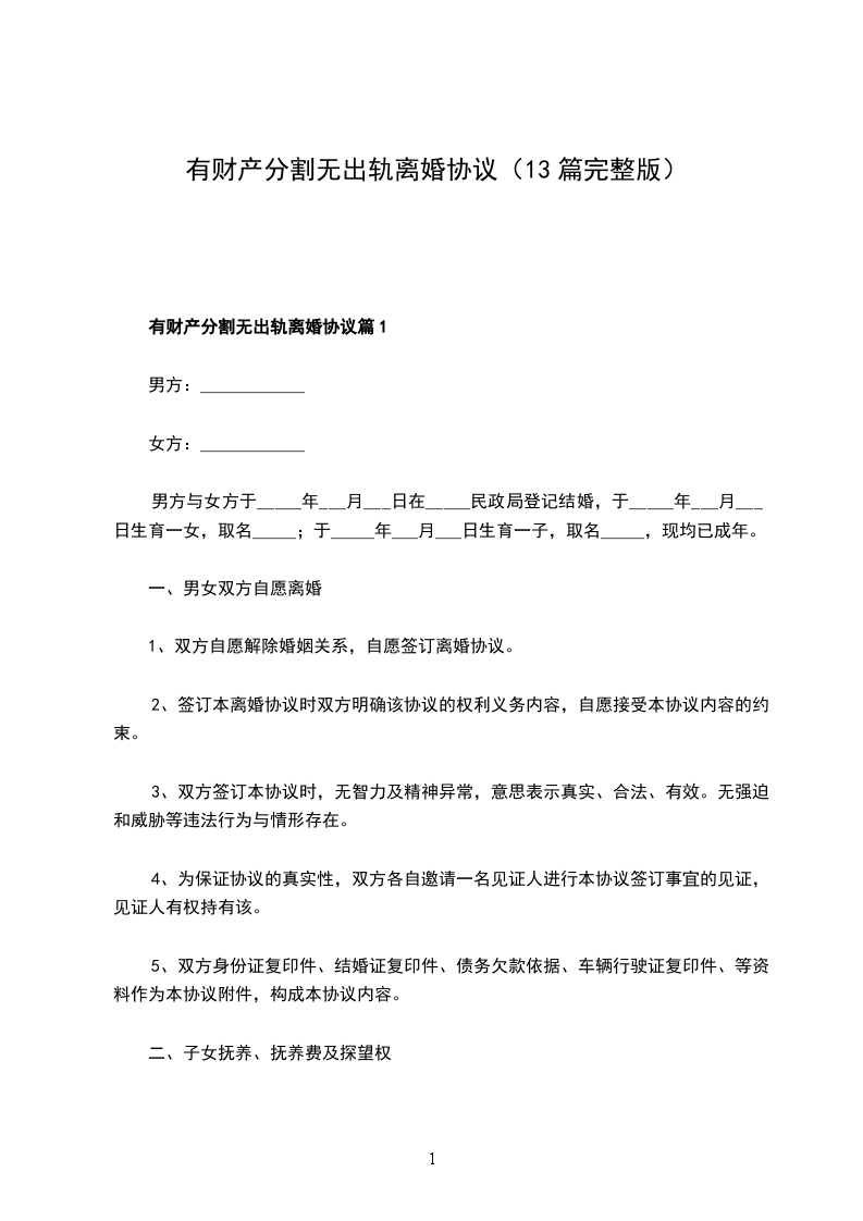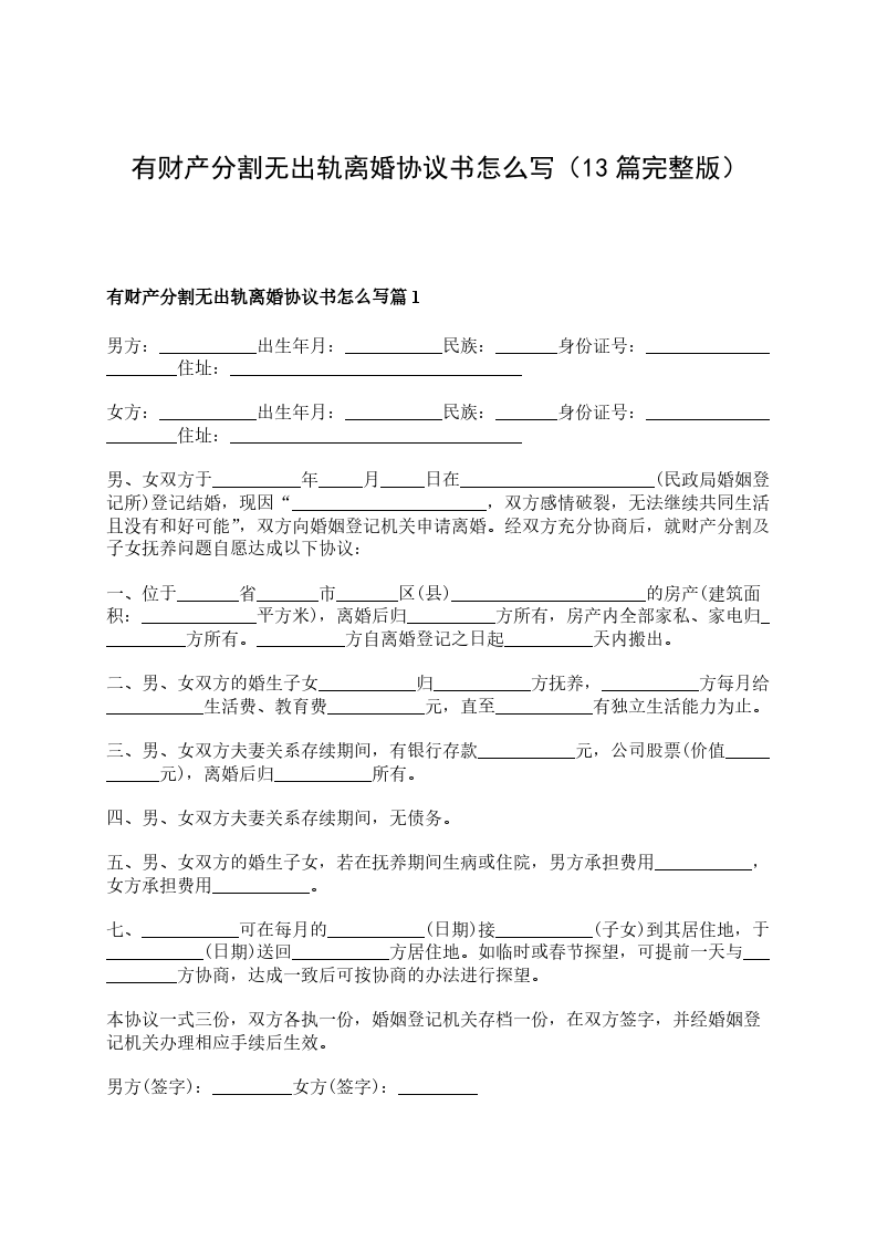 有财产分割无出轨离婚协议篇13