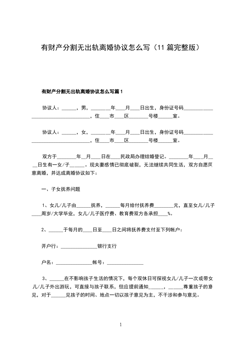 有财产分割无出轨离婚协议篇11
