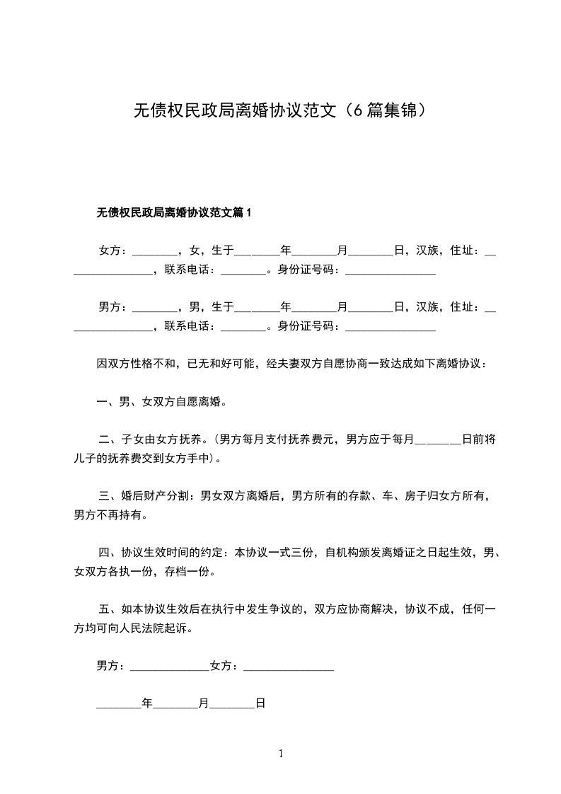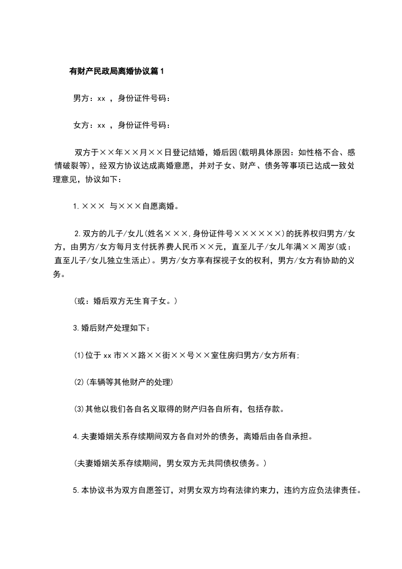 关于民政局离婚协议范文篇6