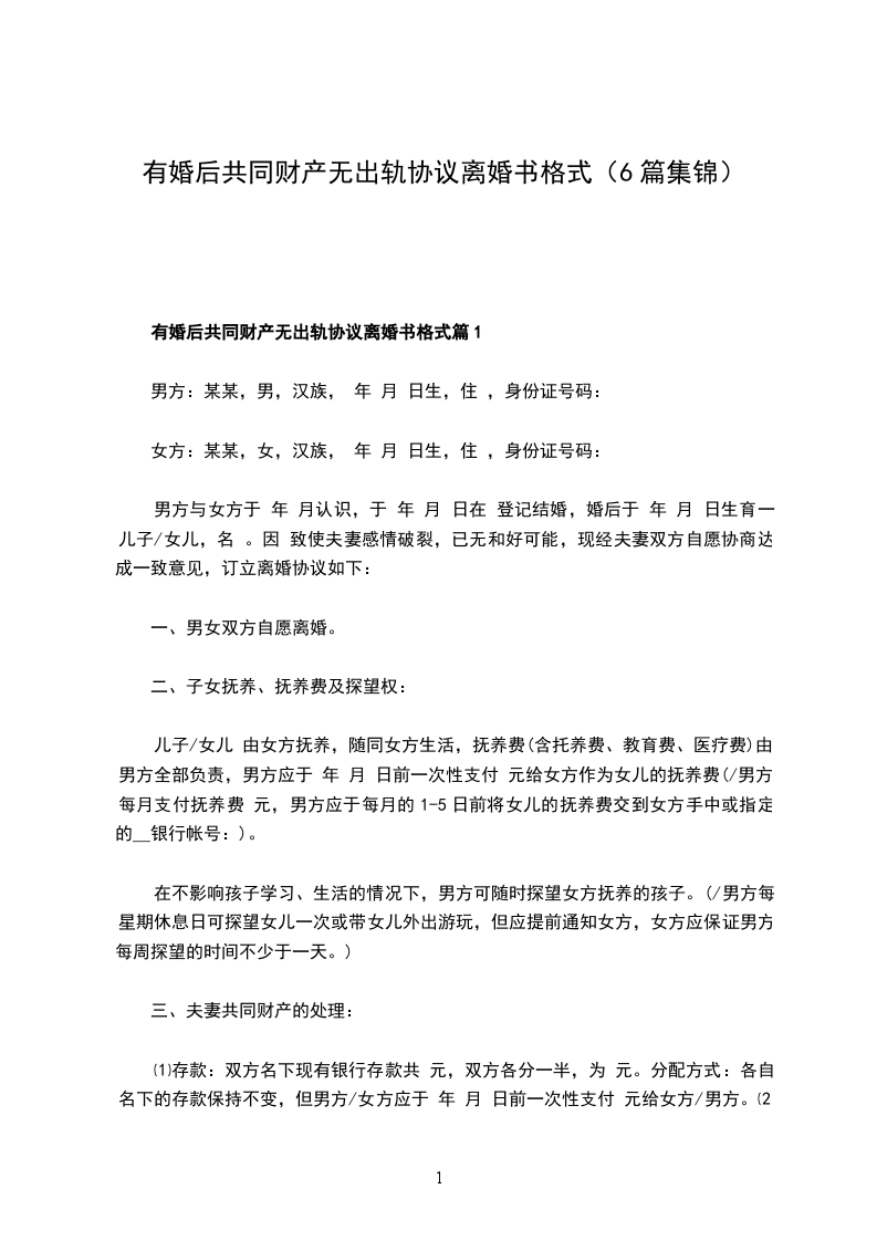 男女双方于___年__月__日在_________登记结婚,婚后于____年__月__日生育一个儿子(女儿),名______.现在夫妻双方的感情已完全破裂,已无和好的可能性,经双方协商达成一致意见,订立离婚协议如下: