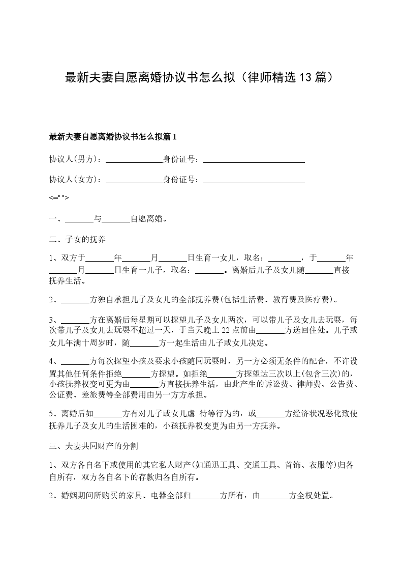 双方合法办理结婚登记,现自愿离婚。经协商一致,达成如下:
