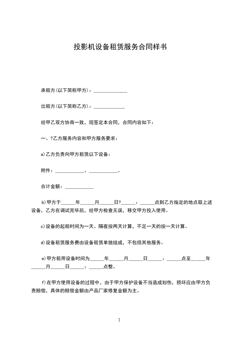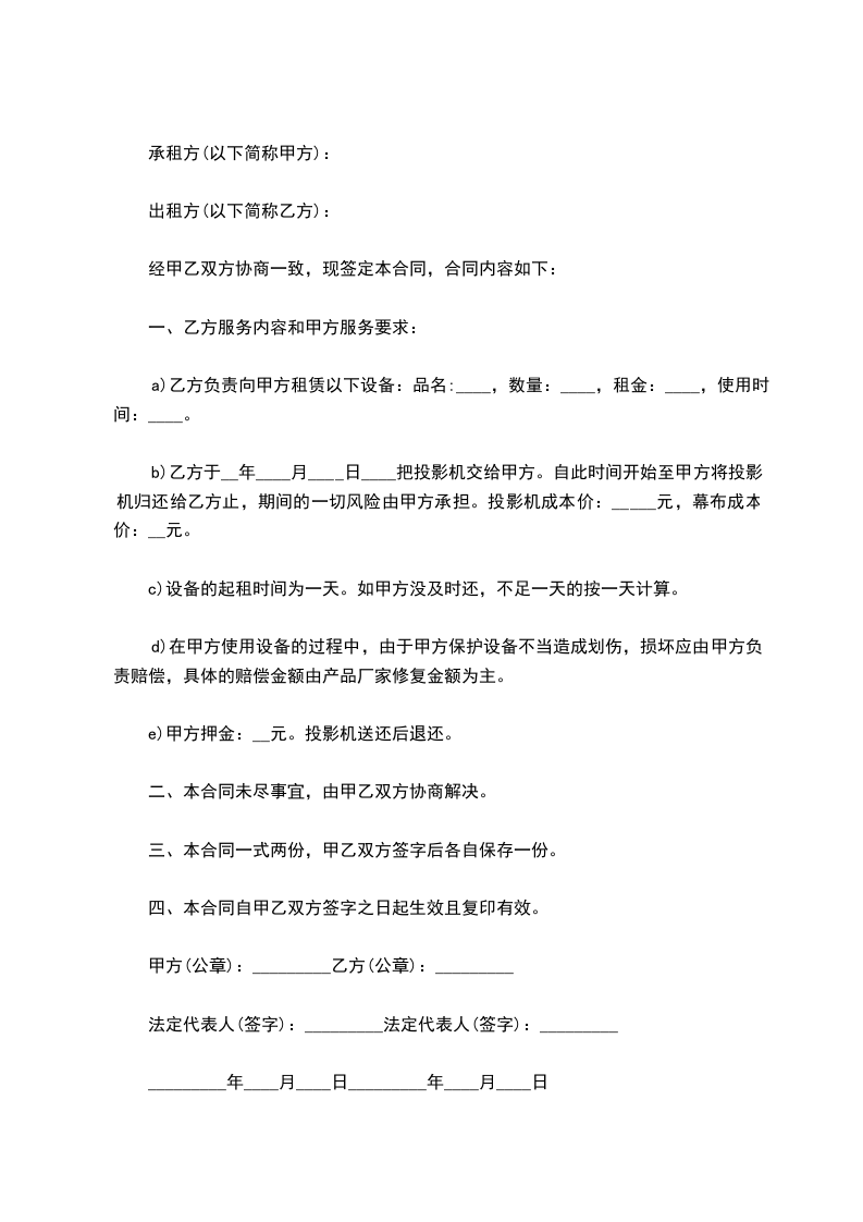 a)乙方负责向甲方租赁以下设备: