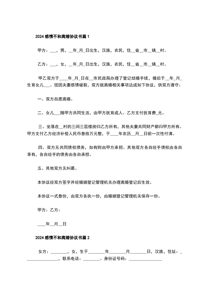 关于感情不和协议离婚书篇7