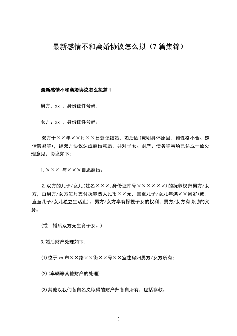 关于感情不和协议离婚书篇1