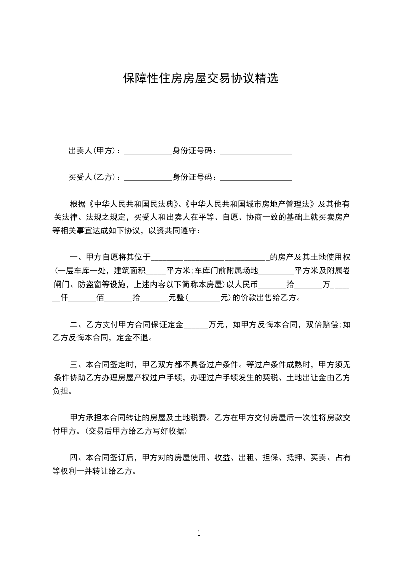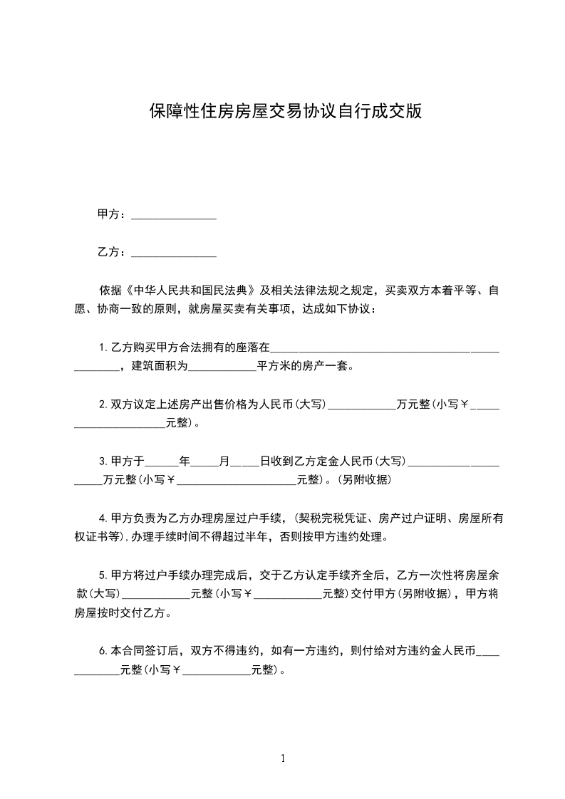 三、本协议签订之后,乙方向甲方支付该房屋总成交价中的人民币_____________________元整)作为该房屋销售合同更名的定金。
