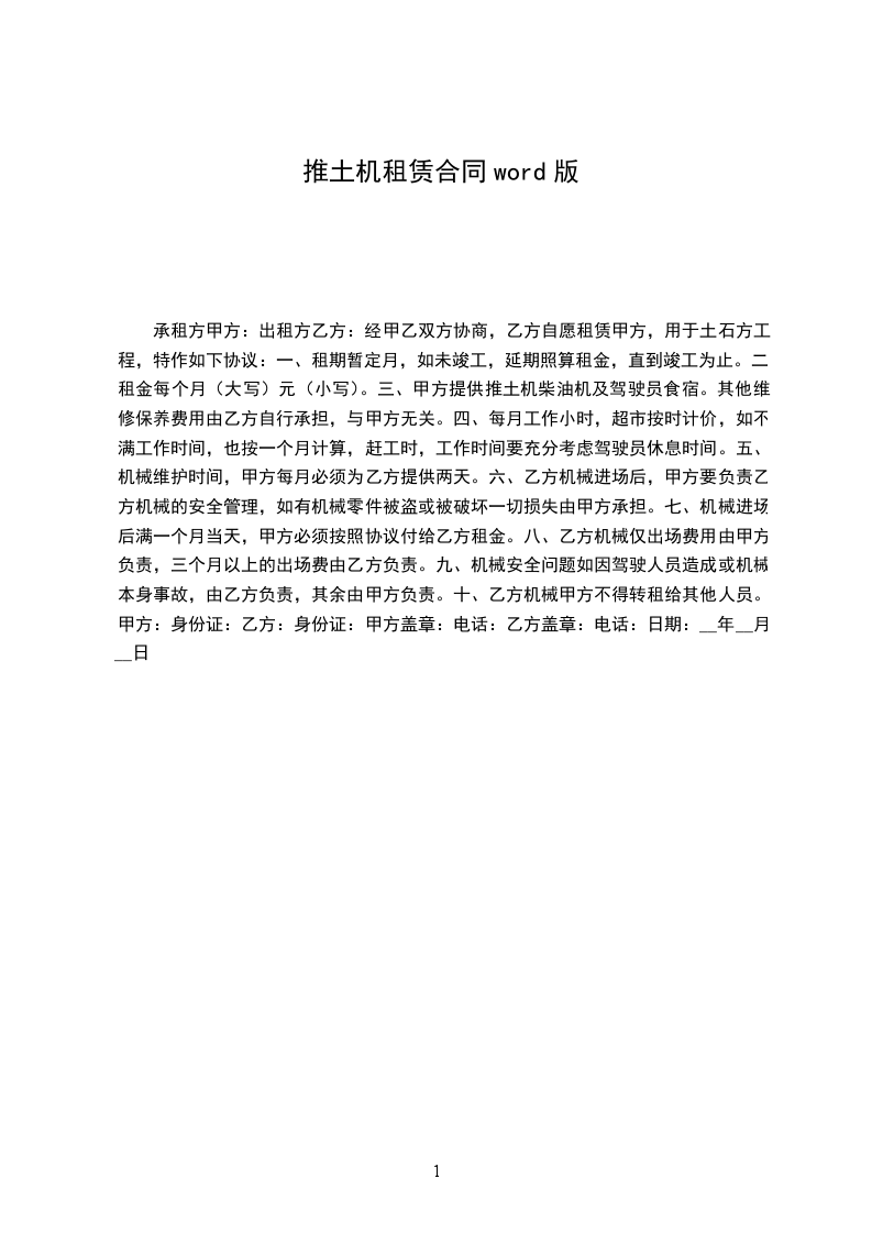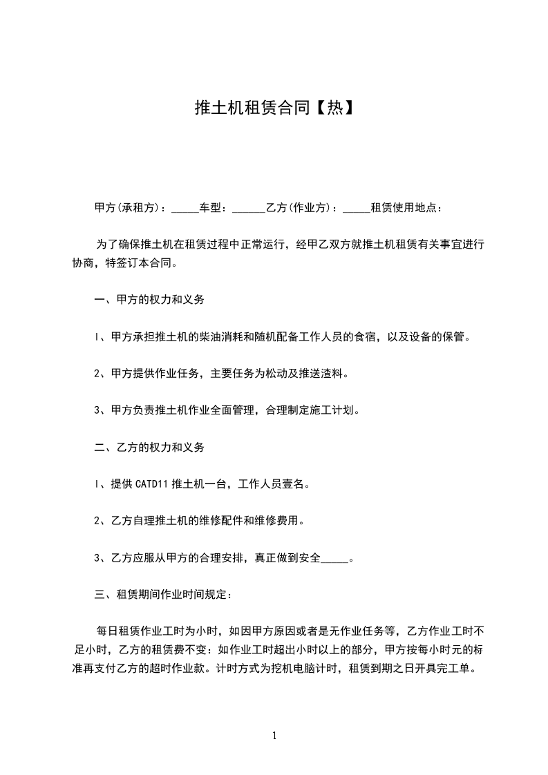 为了确保推土机在租赁过程中正常运行,经甲乙双方就推土机租赁有关事宜进行协商,特签订本合同。