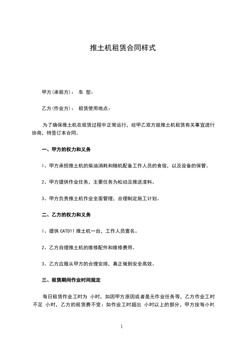 合同宗旨为天数租赁,即每天 小时推土机的基本租赁使用费为1500元整,超出 小时,以外的超时款另外计算(乙方不提供税票)。