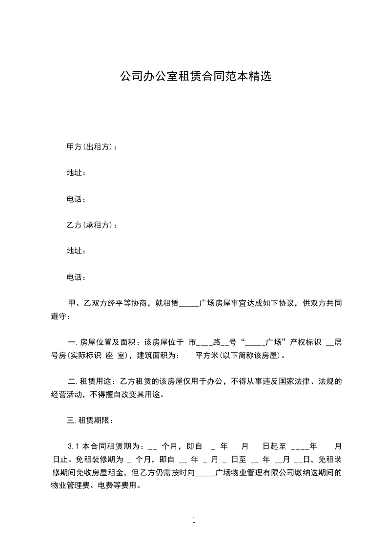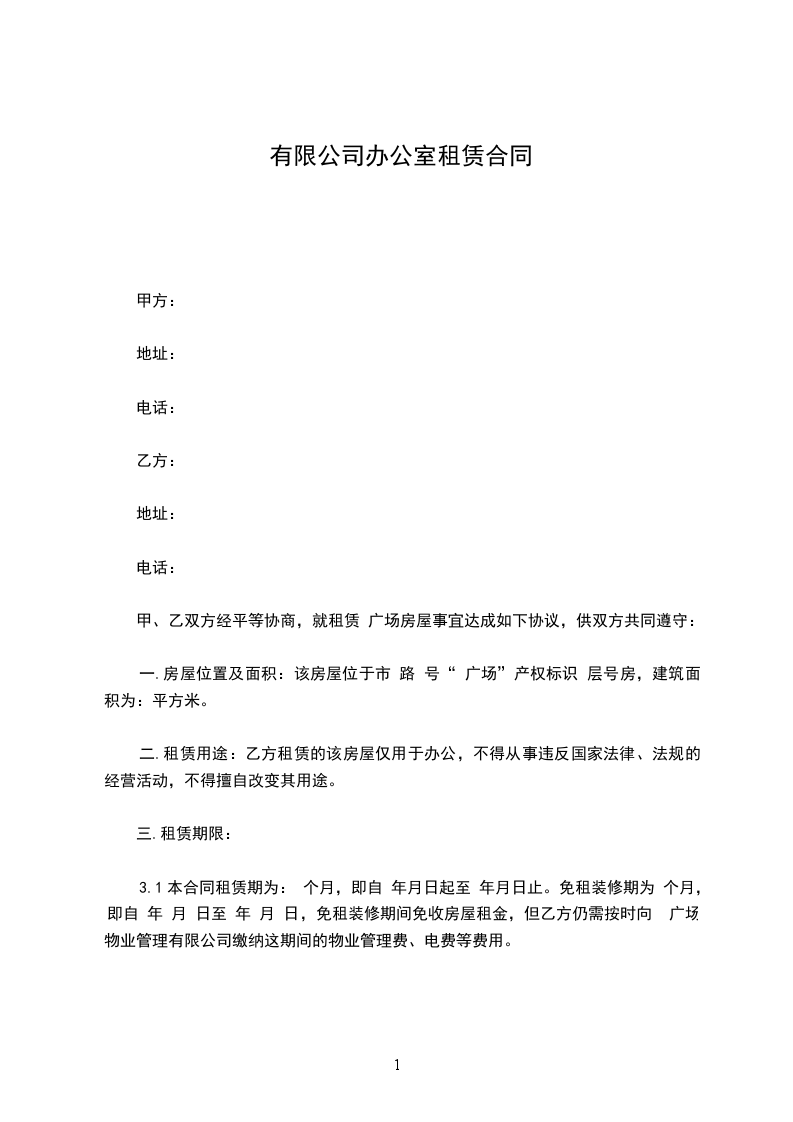 3.1本合同租赁期为:__ 个月,即自 _ 年 月 日起至 ____年 月 日止。免租装修期为 _ 个月,即自 __ 年 _ 月 _ 日至 __ 年 __月 __日,免租装修期间免收房屋租金,但乙方仍需按时向_____广场物业管理有限公司缴纳这期间的物业管理费、电费等费用。