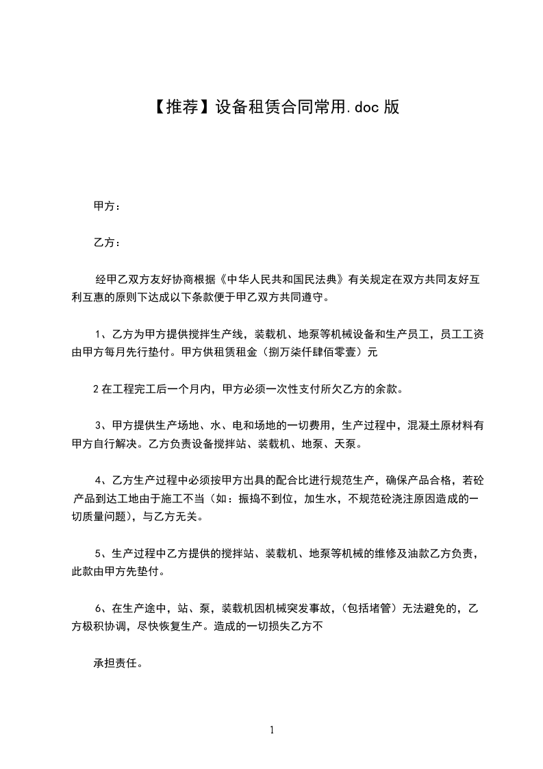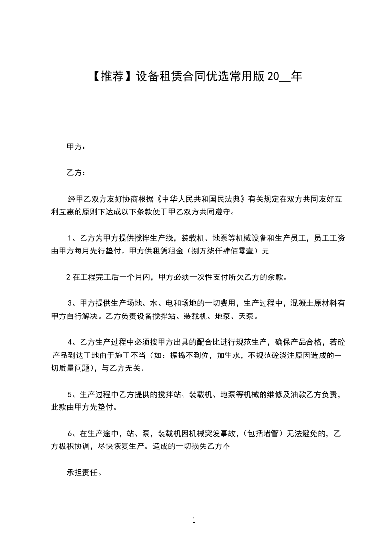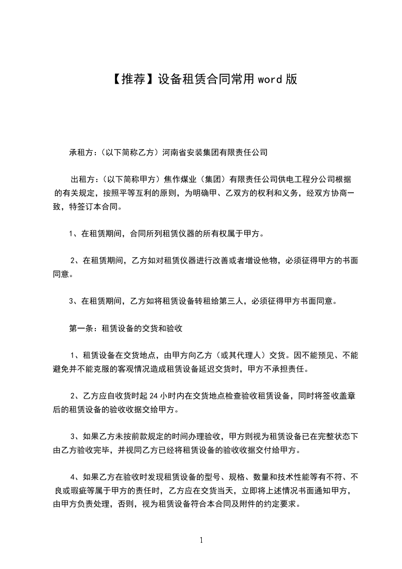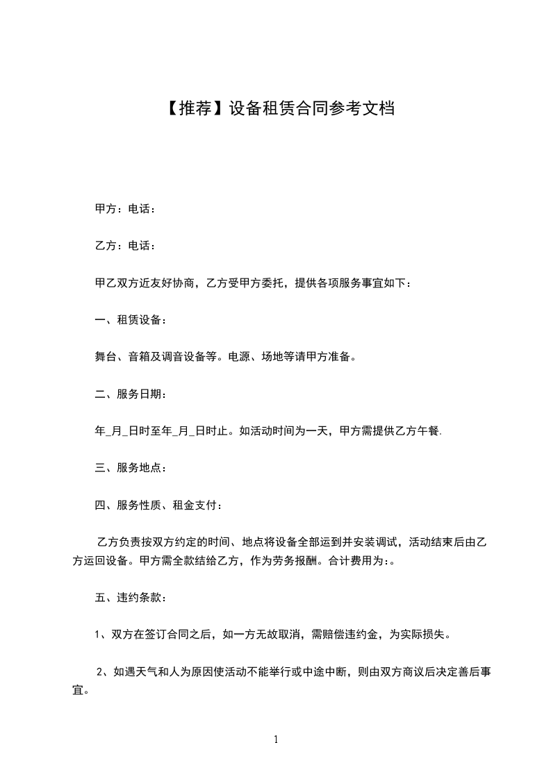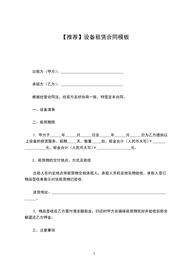 1.甲方于______年______月______日至______年______月______日为乙方提供以上设备的租赁服务。租期_____天,数量_____台。租金合计(人民币大写)¥__________________元,租金合计(人民币大写)¥__________________元。