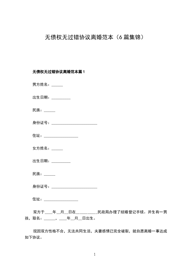 男方与女方于_____年___月认识,于_____年___月___日在___登记结婚,婚后于_____年___月___日生育一儿子/女儿,名______。因_____________致使夫妻感情确已破裂,已无和好可能,现经夫妻双方自愿协商达成一致意见,订立离婚协议如下: