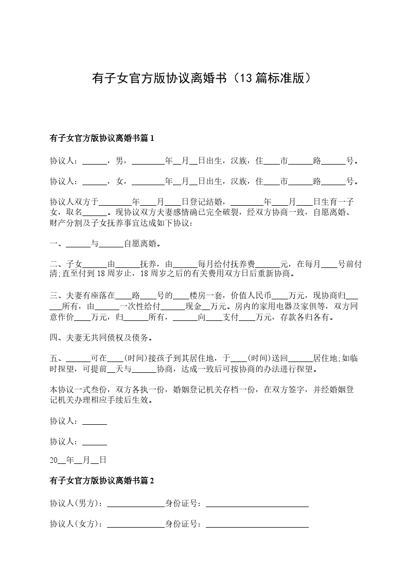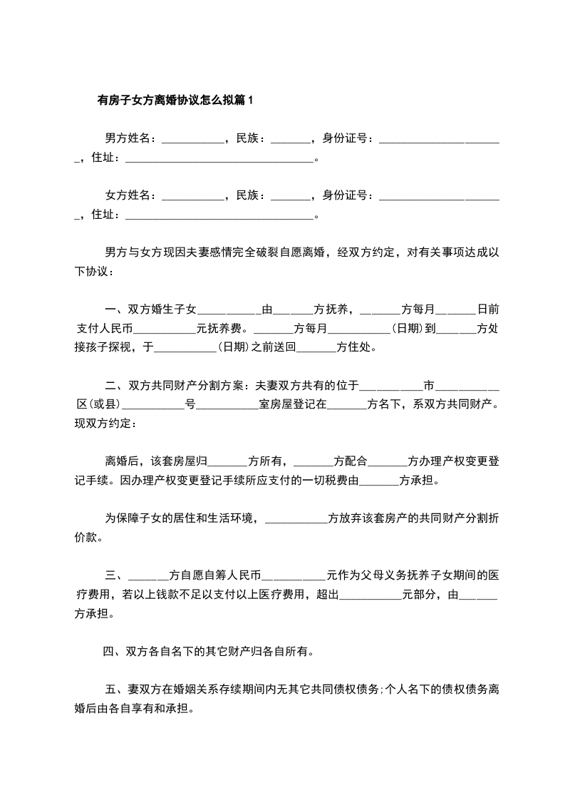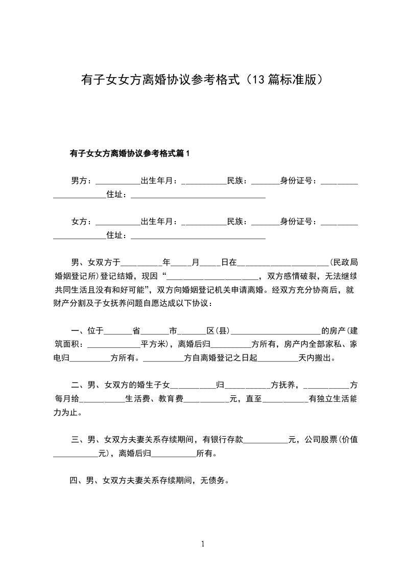 有子女女方离婚协议篇13