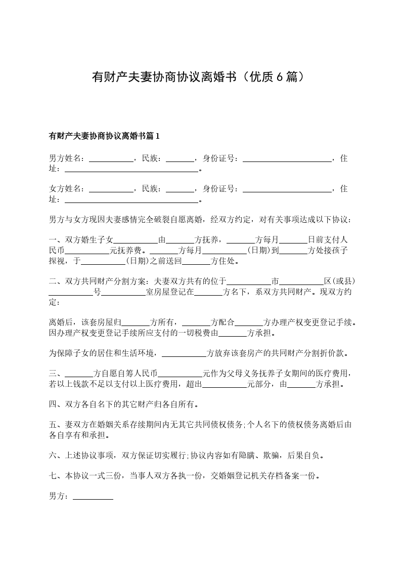 双方确认夫妻共同财产在上述第三条已做出明确列明。除上述___________________外,并无其他财产,任何一方应保证以上所列婚内全部共同财产的真实性。