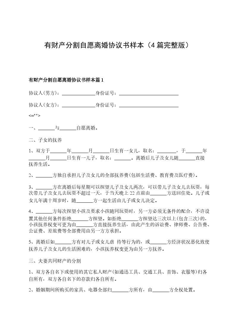 本协议一式____份,双方各执一份,婚姻登记机关存档一份,在双方签字,并经婚姻登记机关办理相应手续后生效。