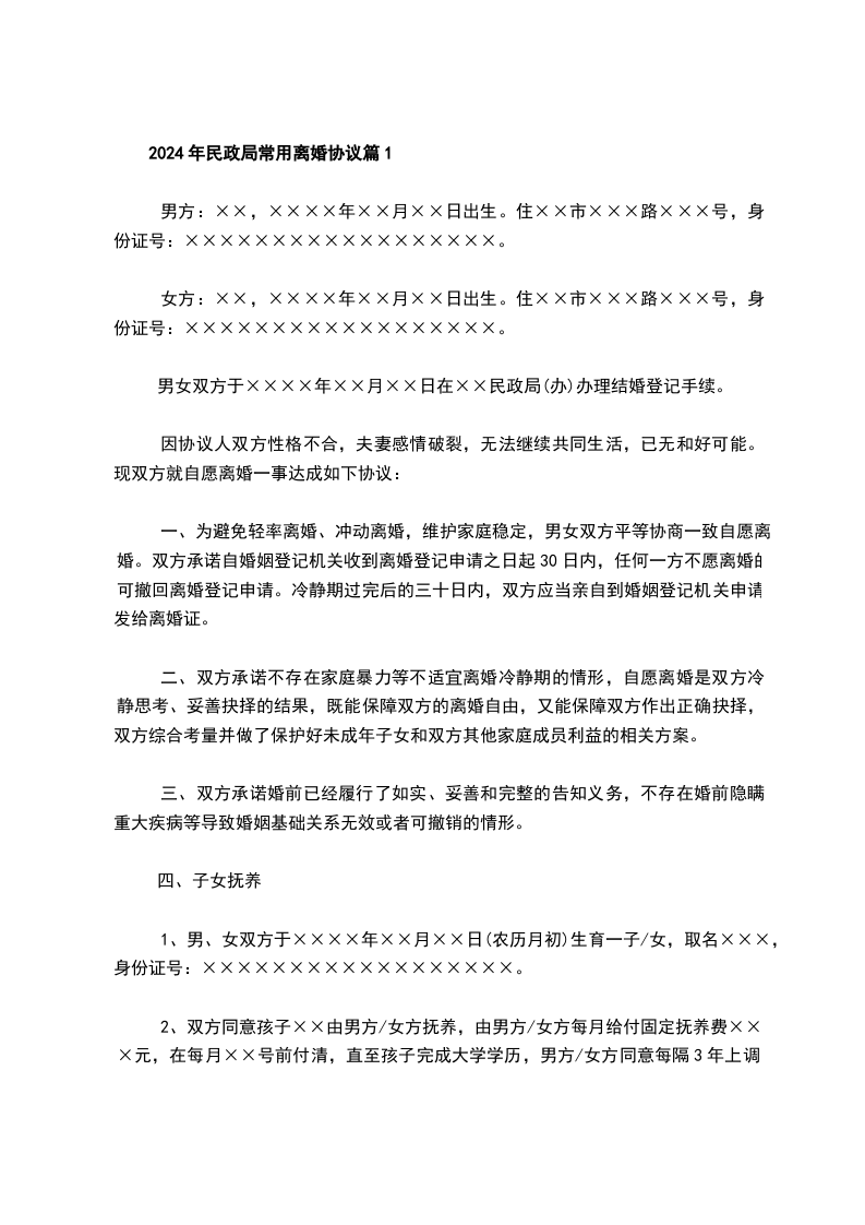 2024民政局协议离婚书如何写篇8