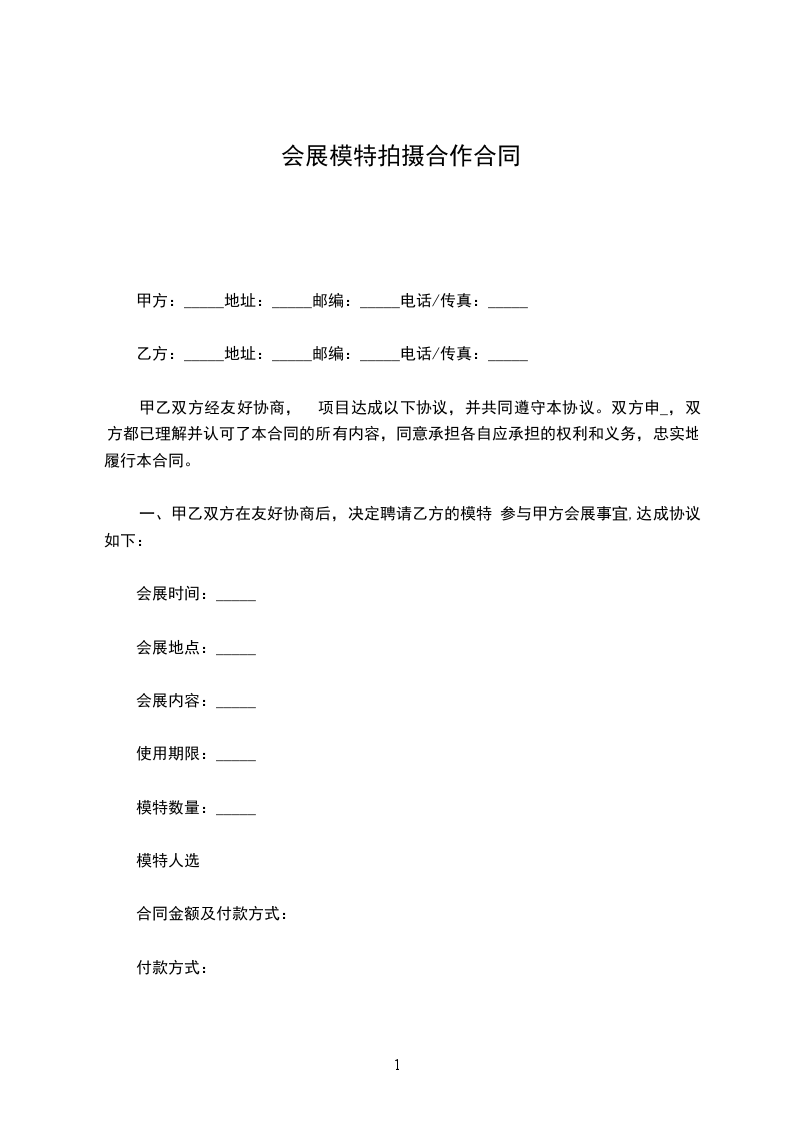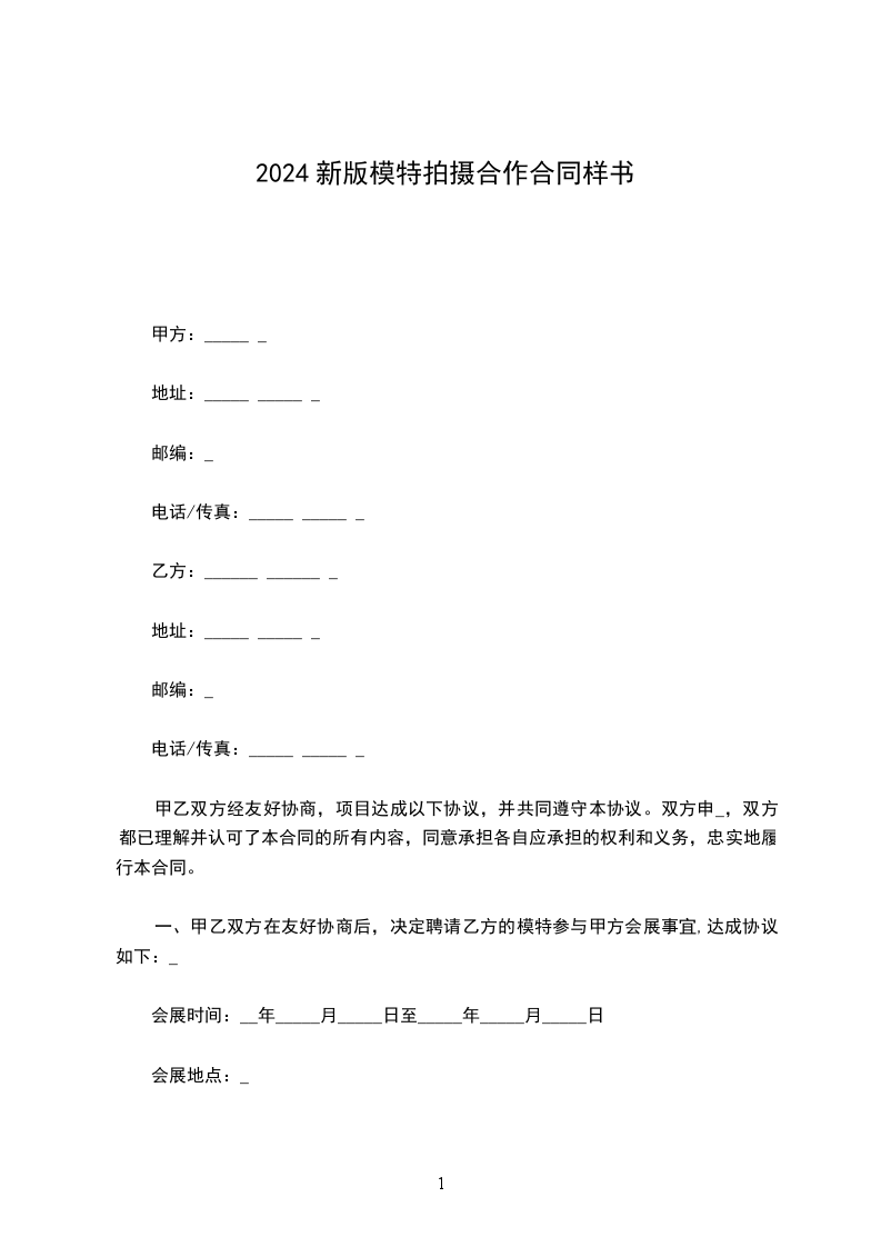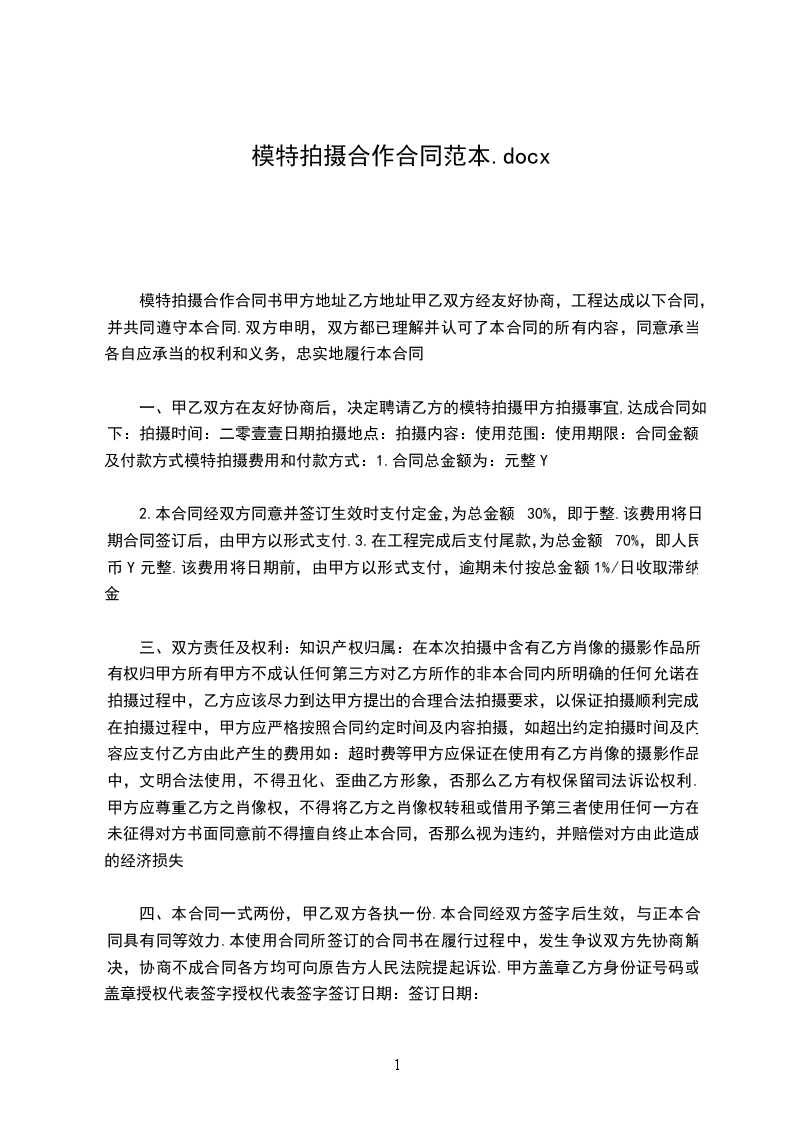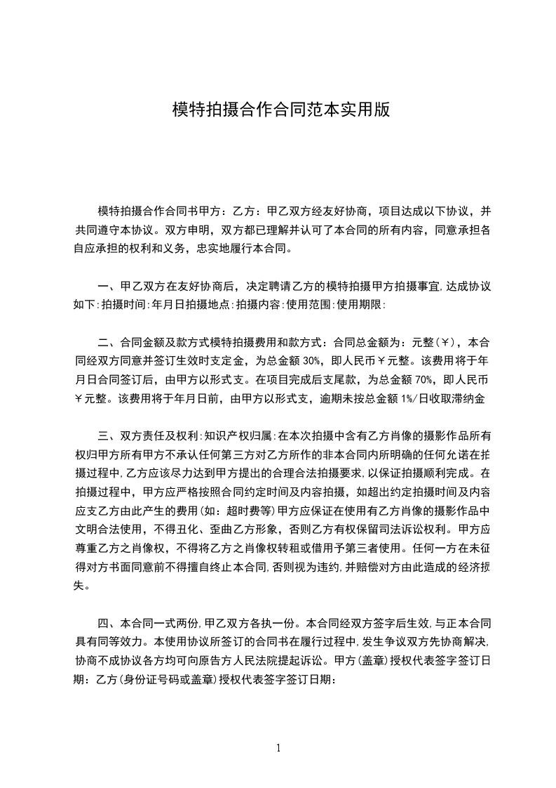 一、甲乙双方在友好协商后,决定聘请乙方的模特 拍摄甲方 拍摄事宜,达成协议如下: