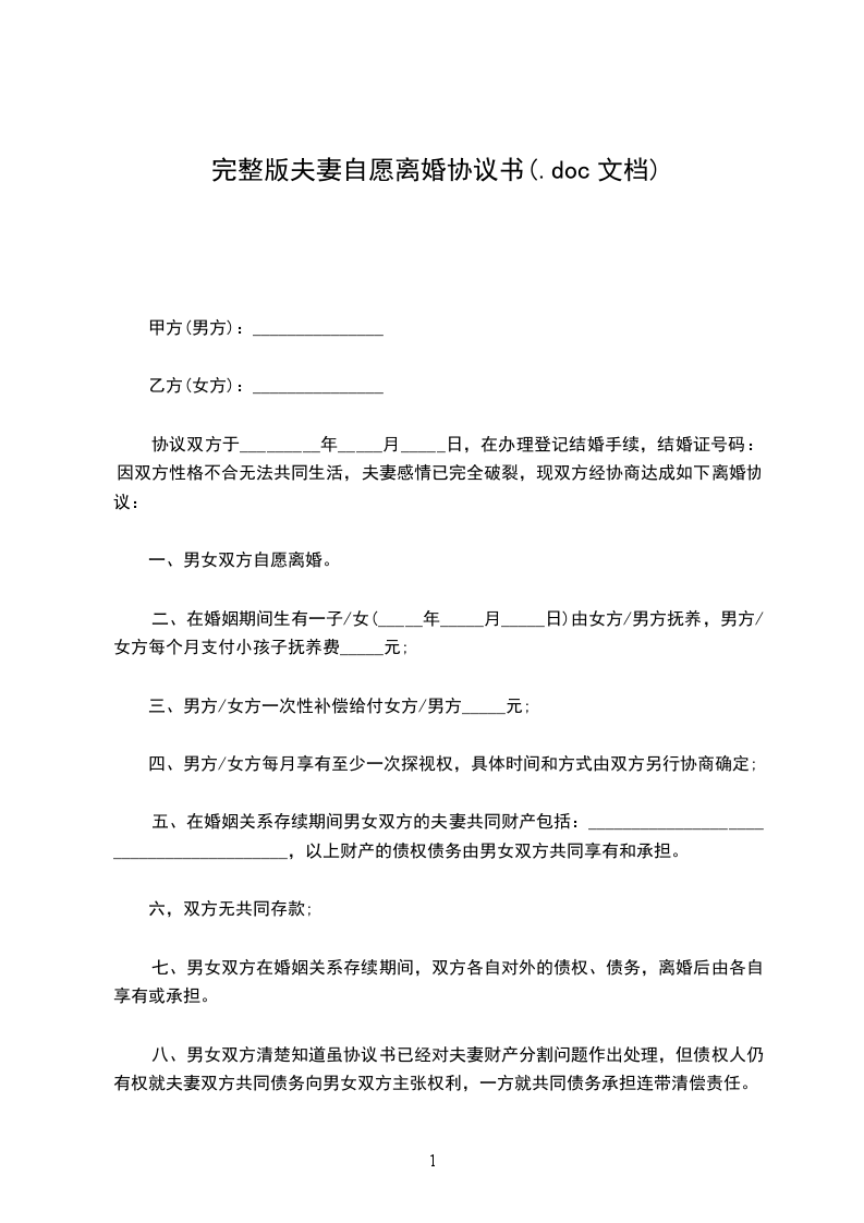 我们自愿离婚,双方均具有完全民事行为能力,完全同意本协议书的各项安排,亦无其它不同意见。