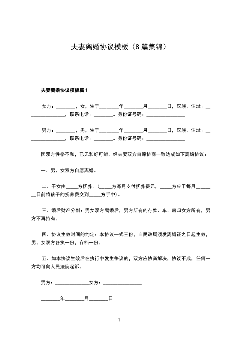 协议人:____,女,____年____月____日生,汉族,____市人,________公司员工,住________市________区________路________号。身份证号:________________联系电话:________________