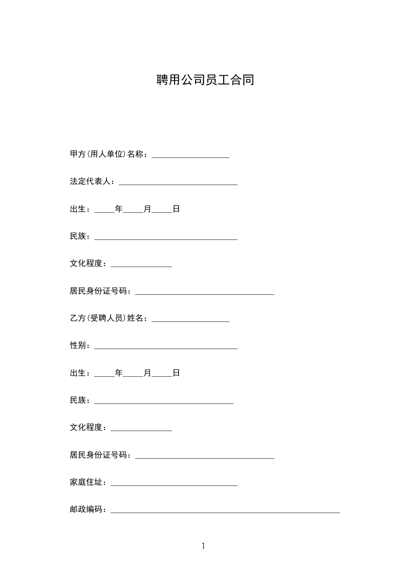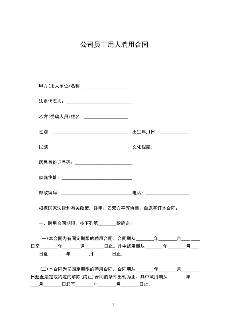 (一)本合同为有固定期限的聘用合同。合同期从________年________月________日至________年________月________日止。其中试用期从________年________月________日至________年________月________日止。