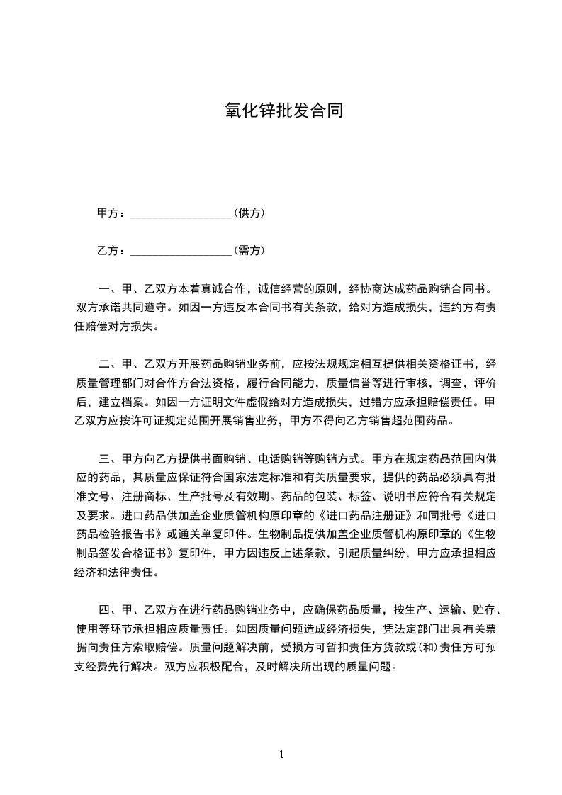 一、甲、乙双方本着真诚合作,诚信经营的原则,经协商达成药品购销合同书。双方承诺共同遵守。如因一方违反本合同书有关条款,给对方造成损失,违约方有责任赔偿对方损失。