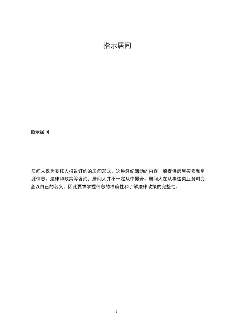 居间人仅为委托人报告订约的居间形式。这种经纪活动的内容一般提供房屋买卖和房源信息、法律和政策等咨询,居间人并不一定从中撮合。居间人在从事这类业务时完全以自己的名义,因此要求掌握信息的准确性和了解法律政策的完整性。