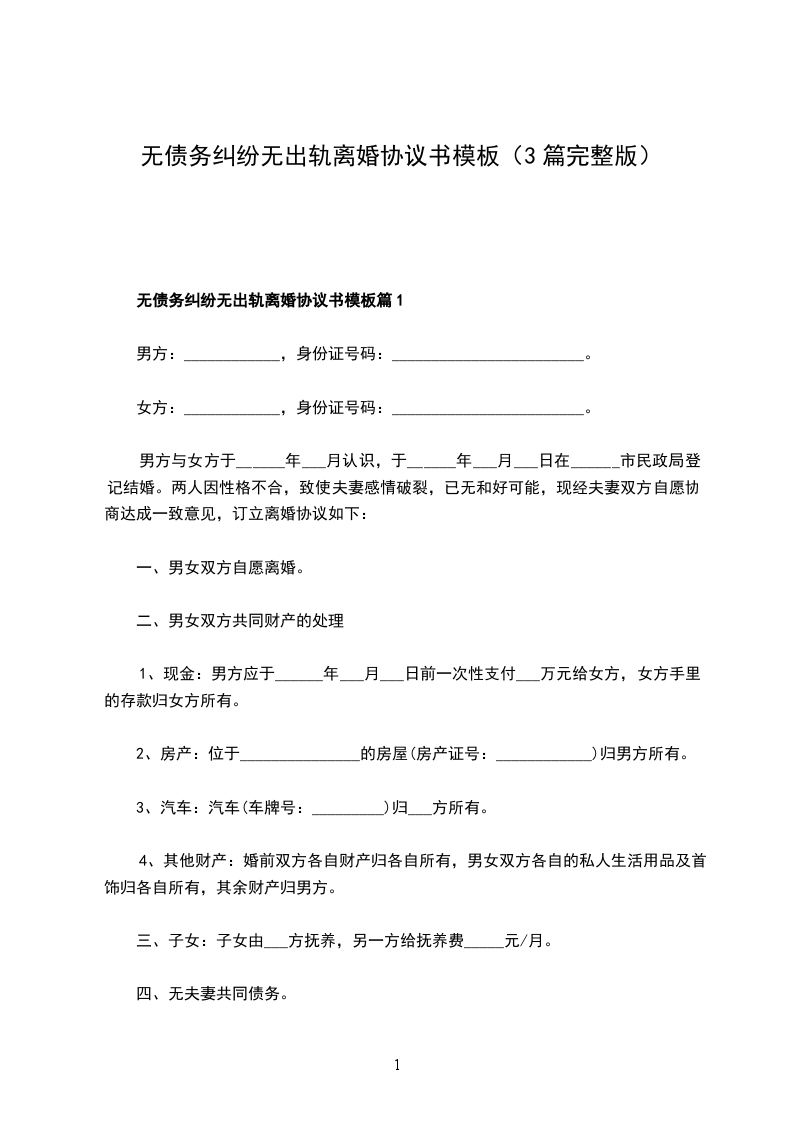 九、本协议一式三份,自婚姻登记处颁发离婚证之日起生效,男、女双方各执一份,婚姻登记机关存档一份。