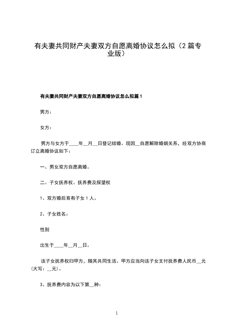 有共同财产夫妻自愿离婚协议书怎么拟篇2