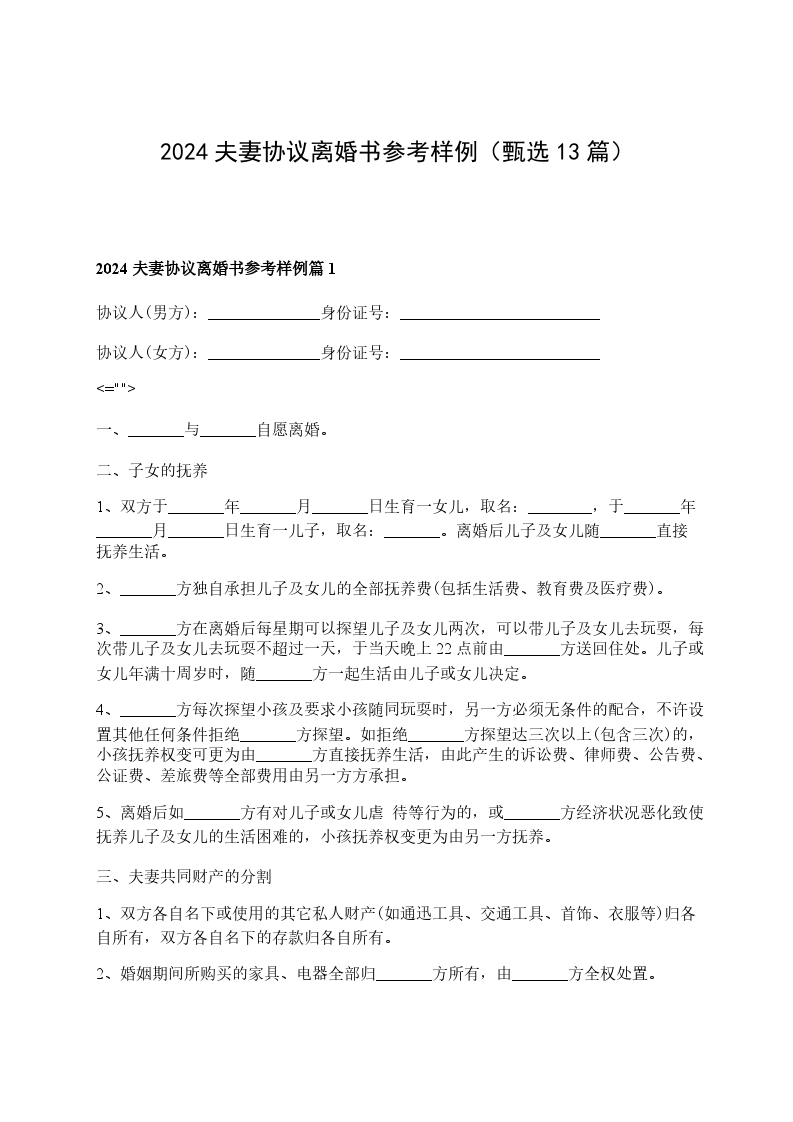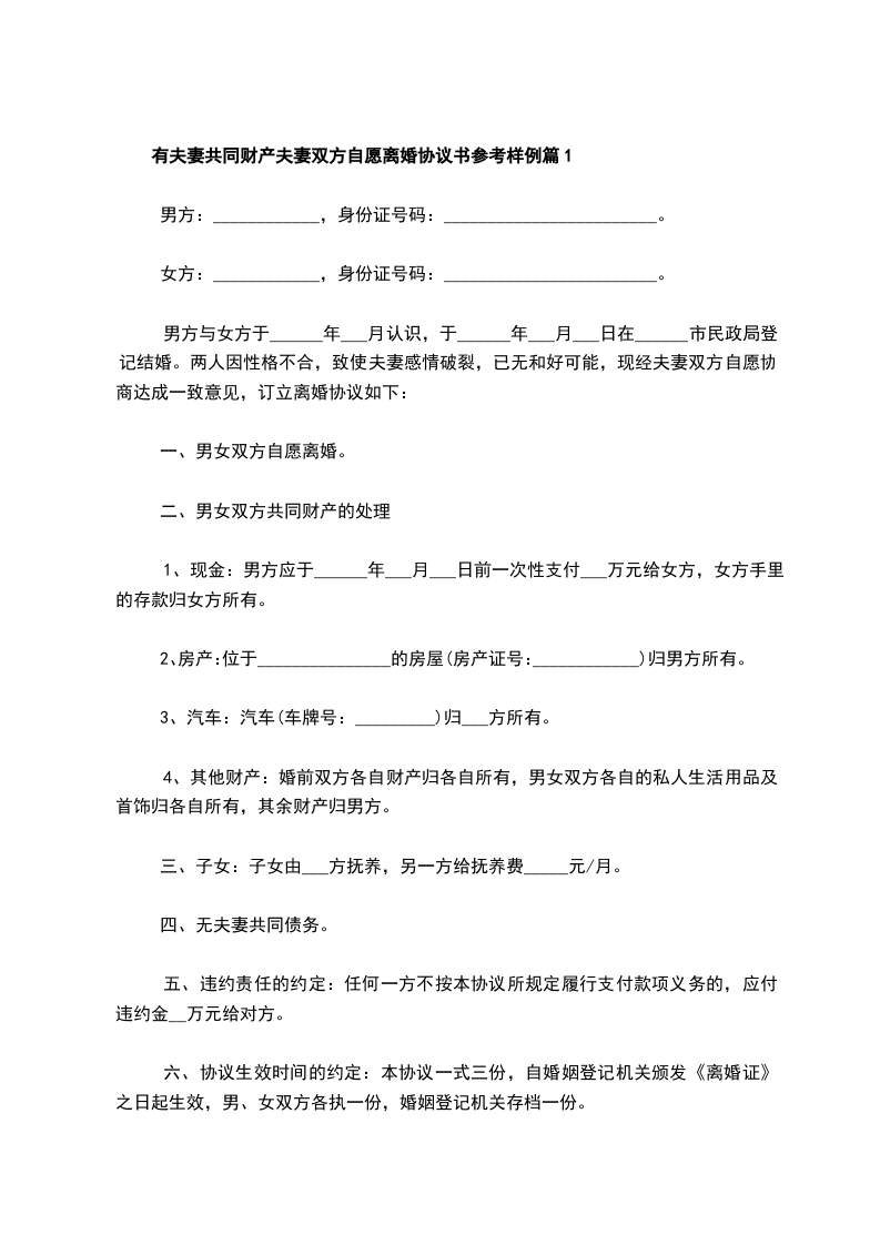 八、本协议一式三份,男、女双方各执一份,婚姻登记机关存档一份。
