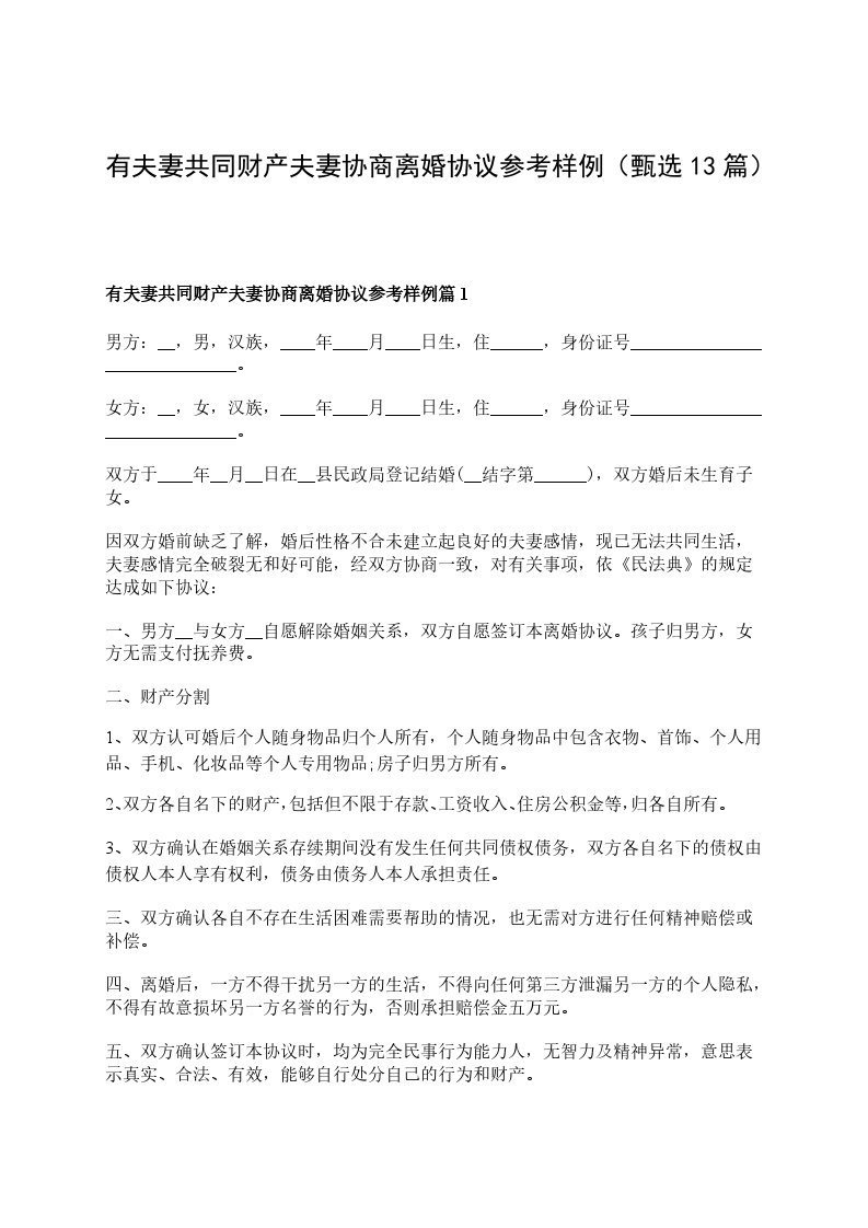 第一条男女双方经充分协商,达成一致意见签订本离婚协议。