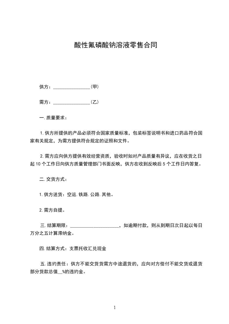(1)因药品质量问题而造成的一切后果及发生的费用由乙方承担。