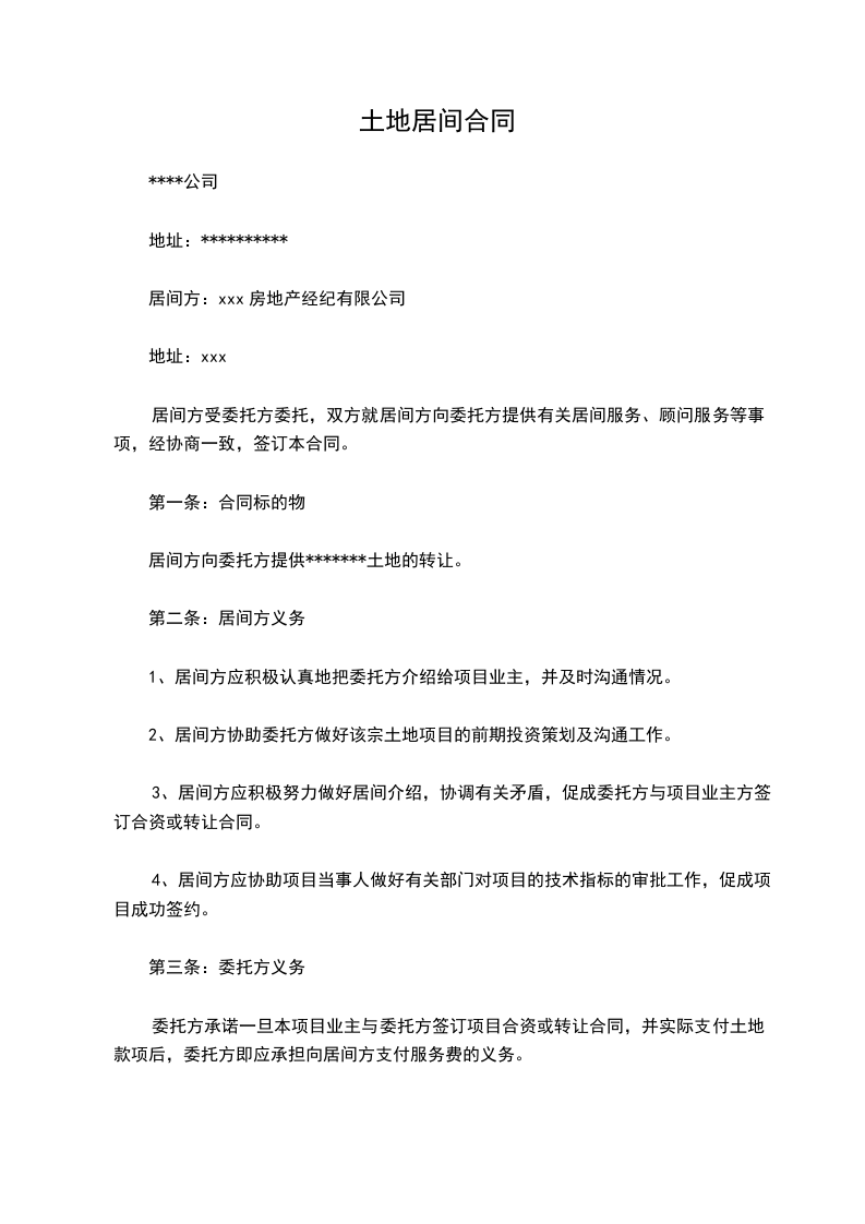 2、居间方协助委托方做好该宗土地项目的前期投资策划及沟通工作。