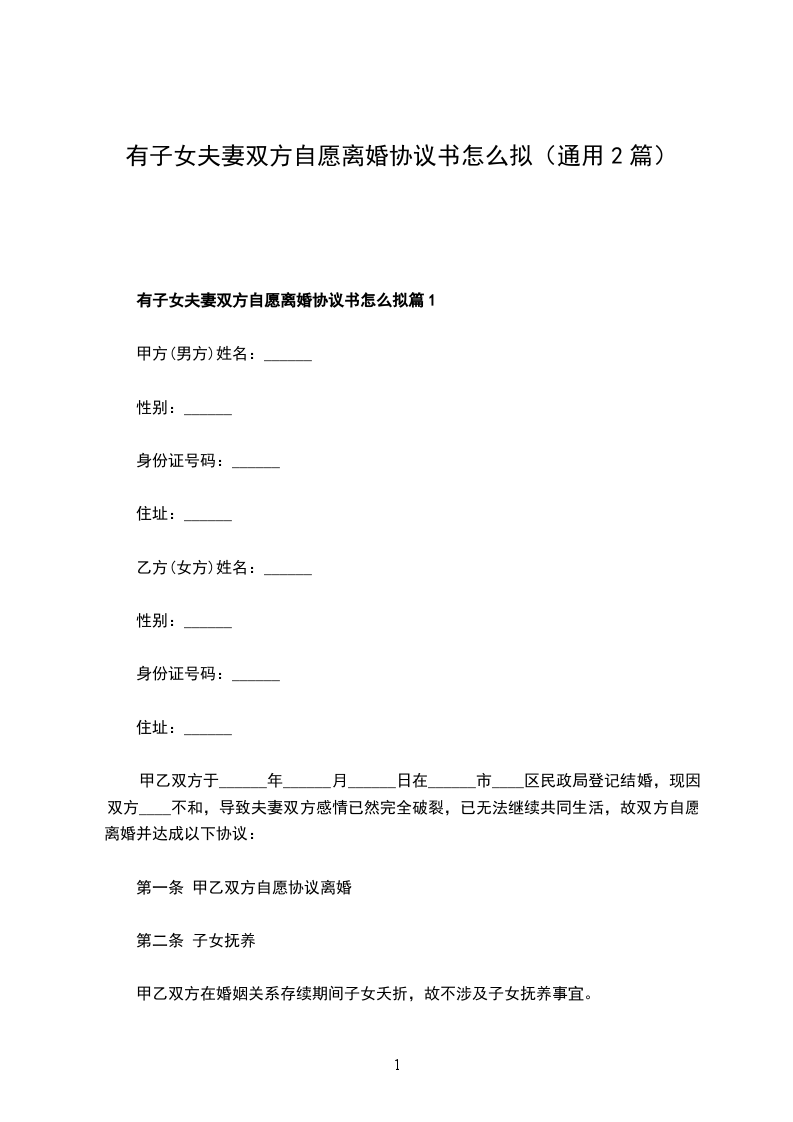 有子女夫妻双方自愿离婚协议书怎么拟篇2