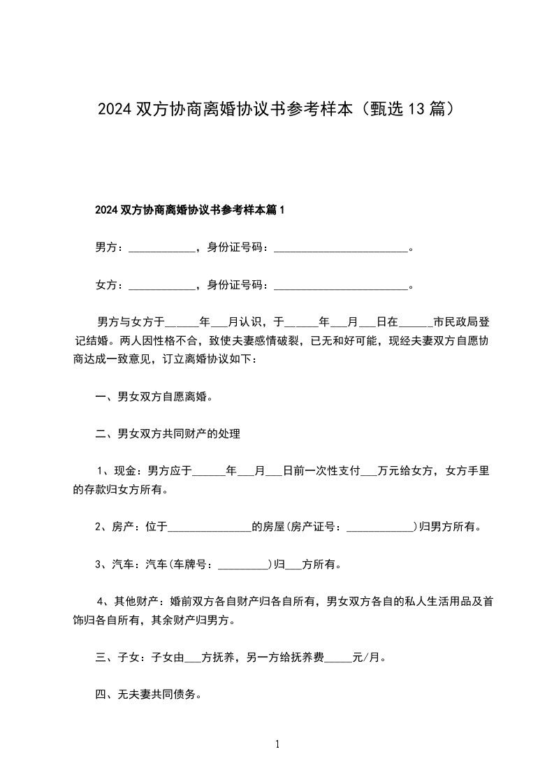 九、本协议一式________份,自婚姻登记处颁发离婚证之日起生效,男、女双方各执________份,婚姻登记机关存档一份。