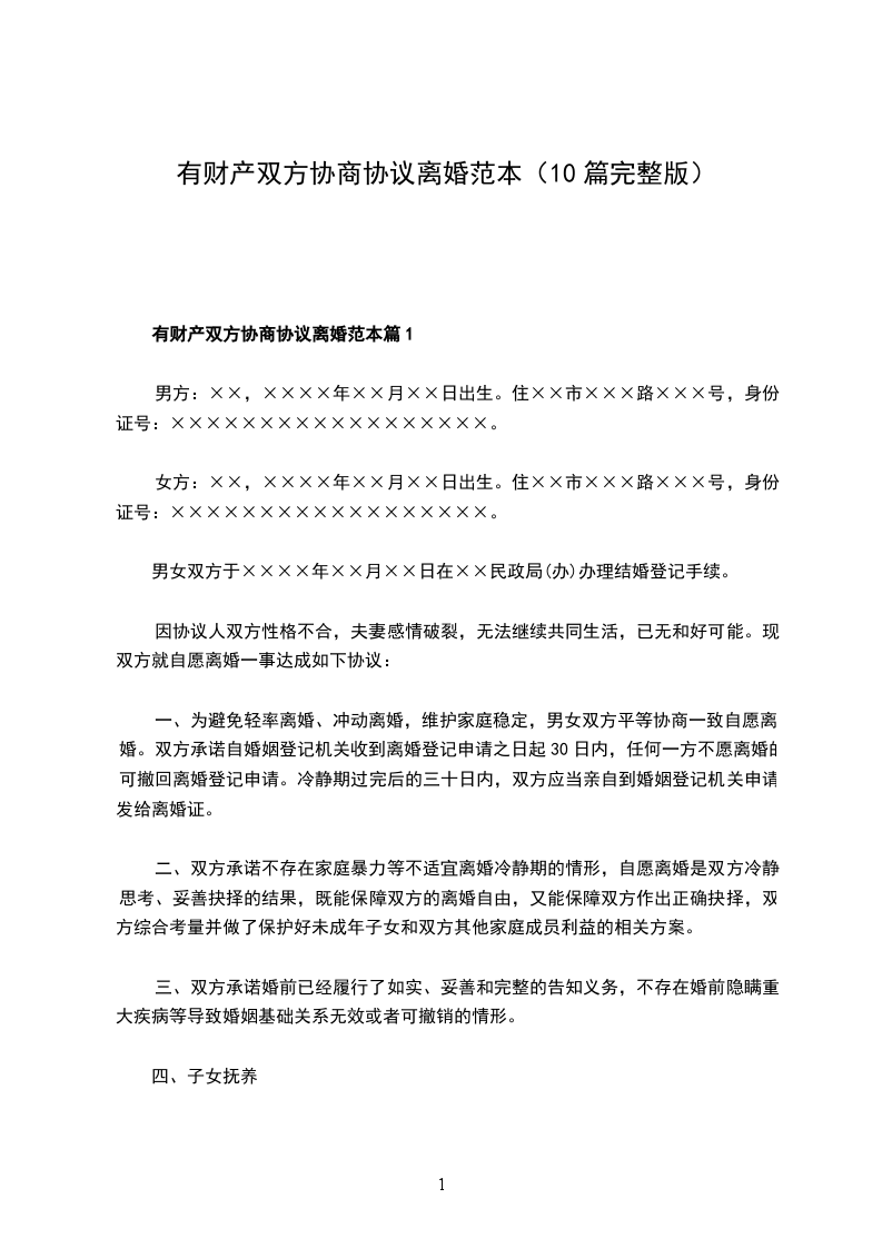 双方于__年月日在人民政府的民政部门登记结婚,因双方性格不和,无法共同生活,自愿离婚,经双方协商一致,订立离婚协议如下: