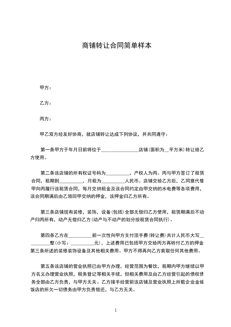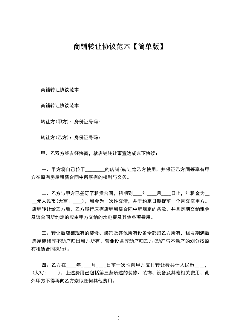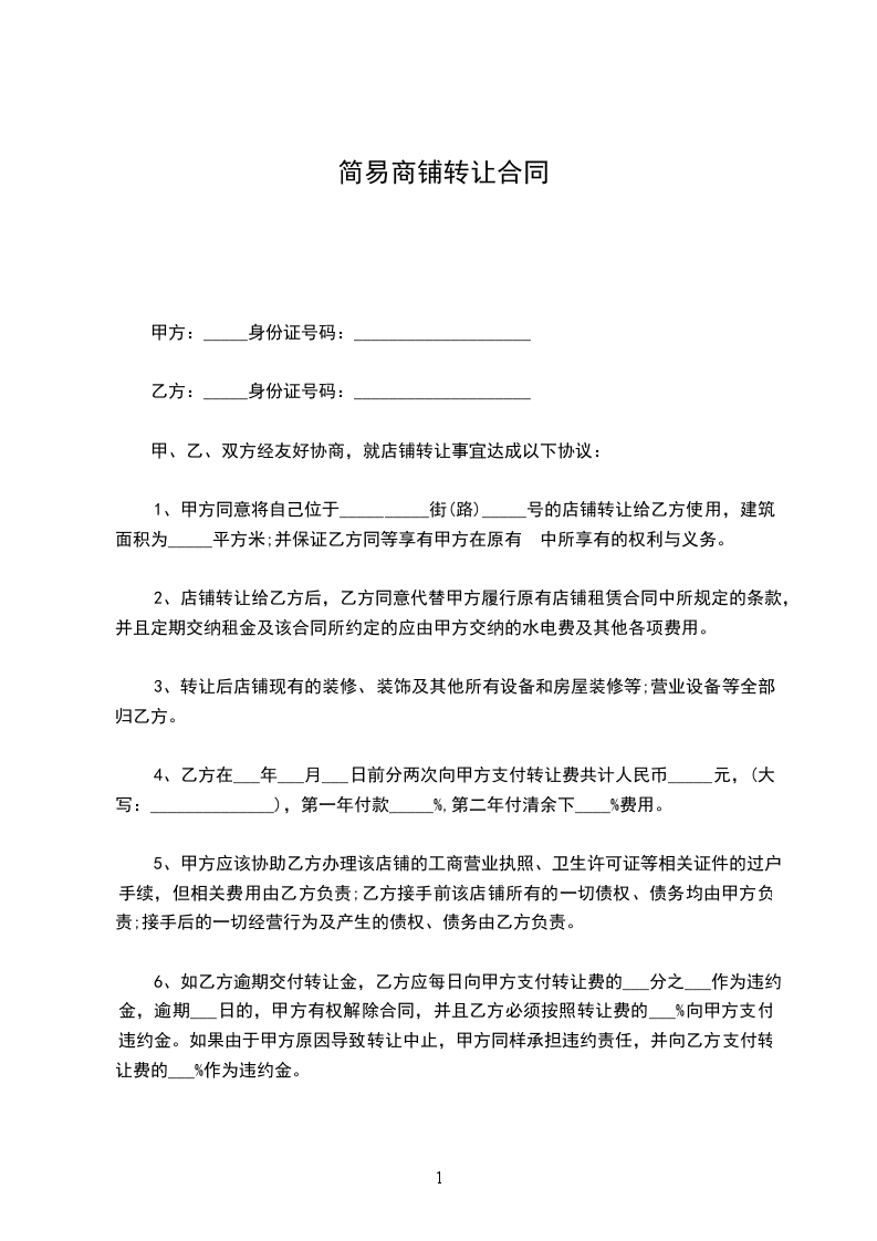 甲乙双方经友好协商,就店铺转让达成下列协议,并共同遵守: