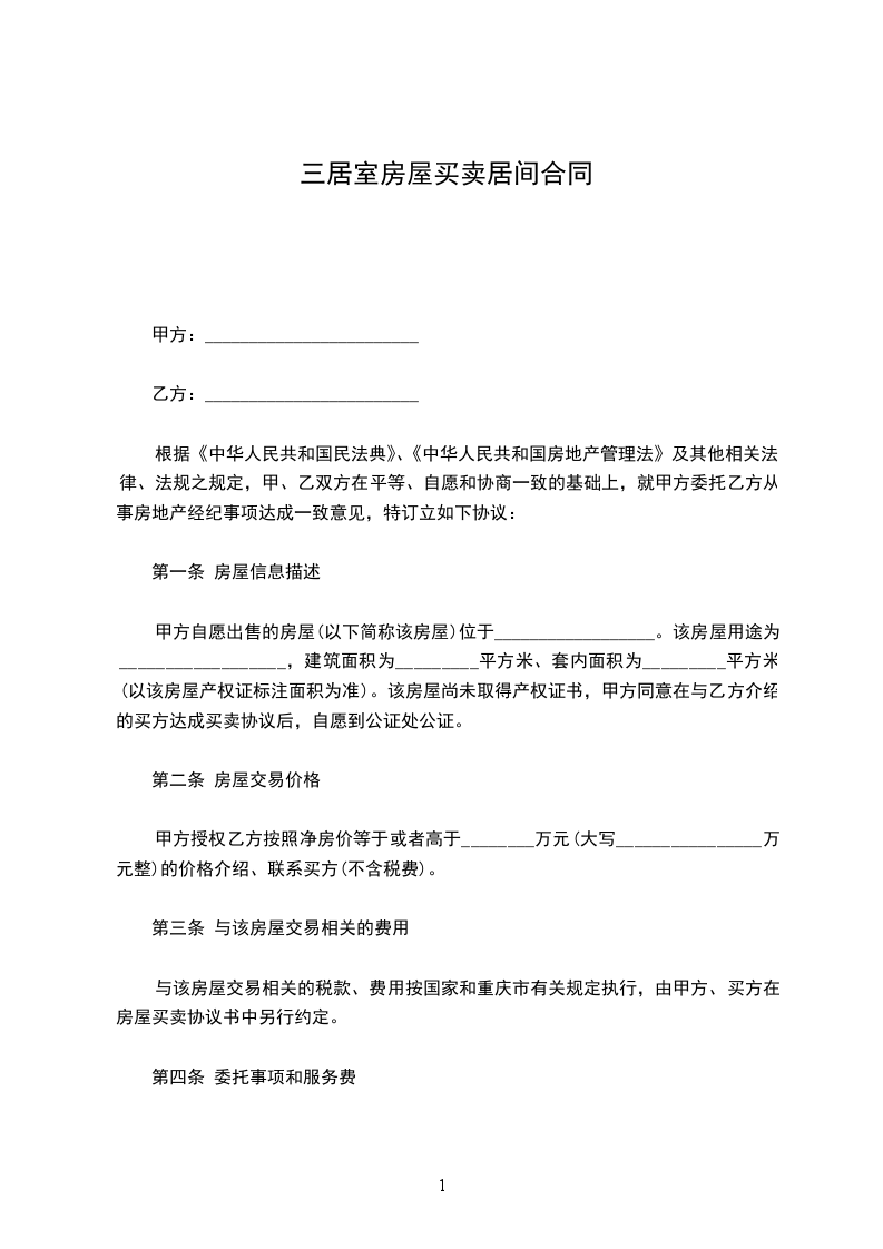 委托人______称为甲方,居间人______称为乙方,兹为不动产房屋委托出卖订约的媒介经当事人议定合同如下:
