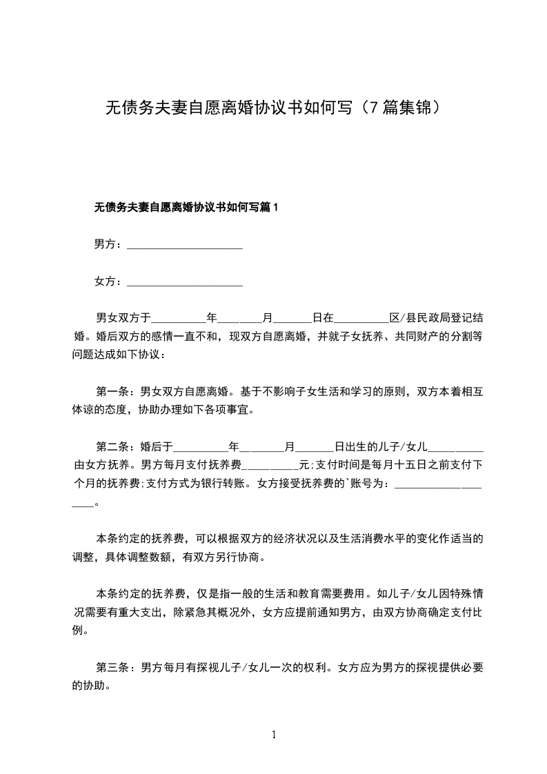 1、甲乙双方确认在婚姻关系存续期间无共同债务;