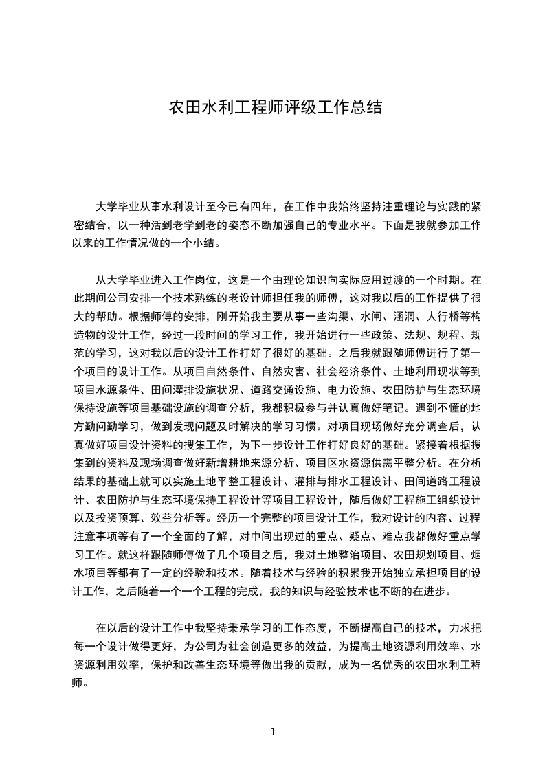 在以后的设计工作中我坚持秉承学习的工作态度,不断提高自己的技术,力求把每一个设计做得更好,为公司为社会创造更多的效益,为提高土地资源利用效率、水资源利用效率,保护和改善生态环境等做出我的贡献,成为一名优秀的农田水利工程师。