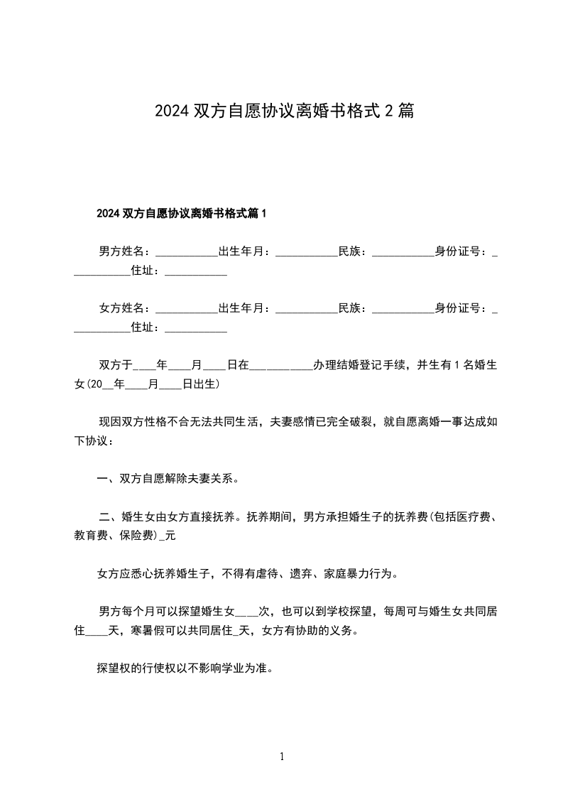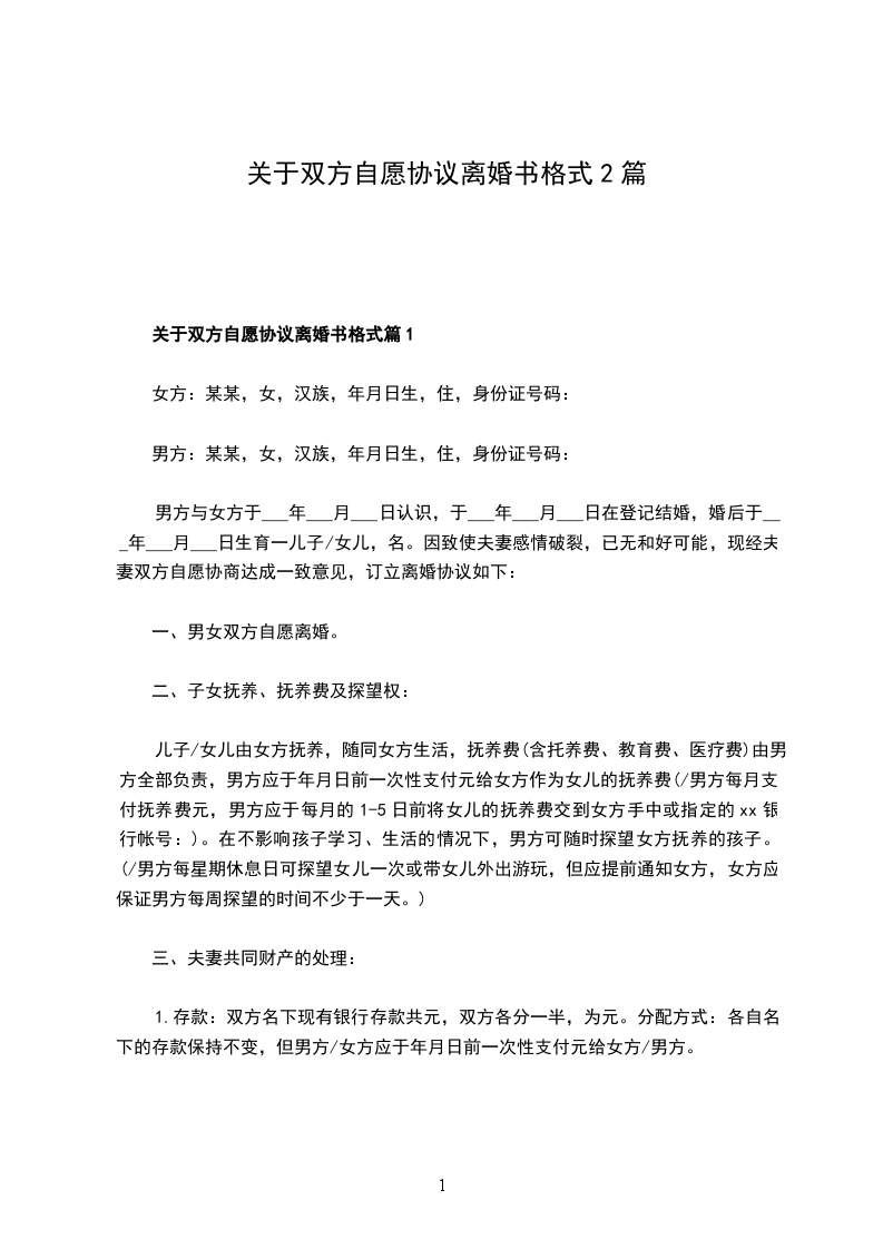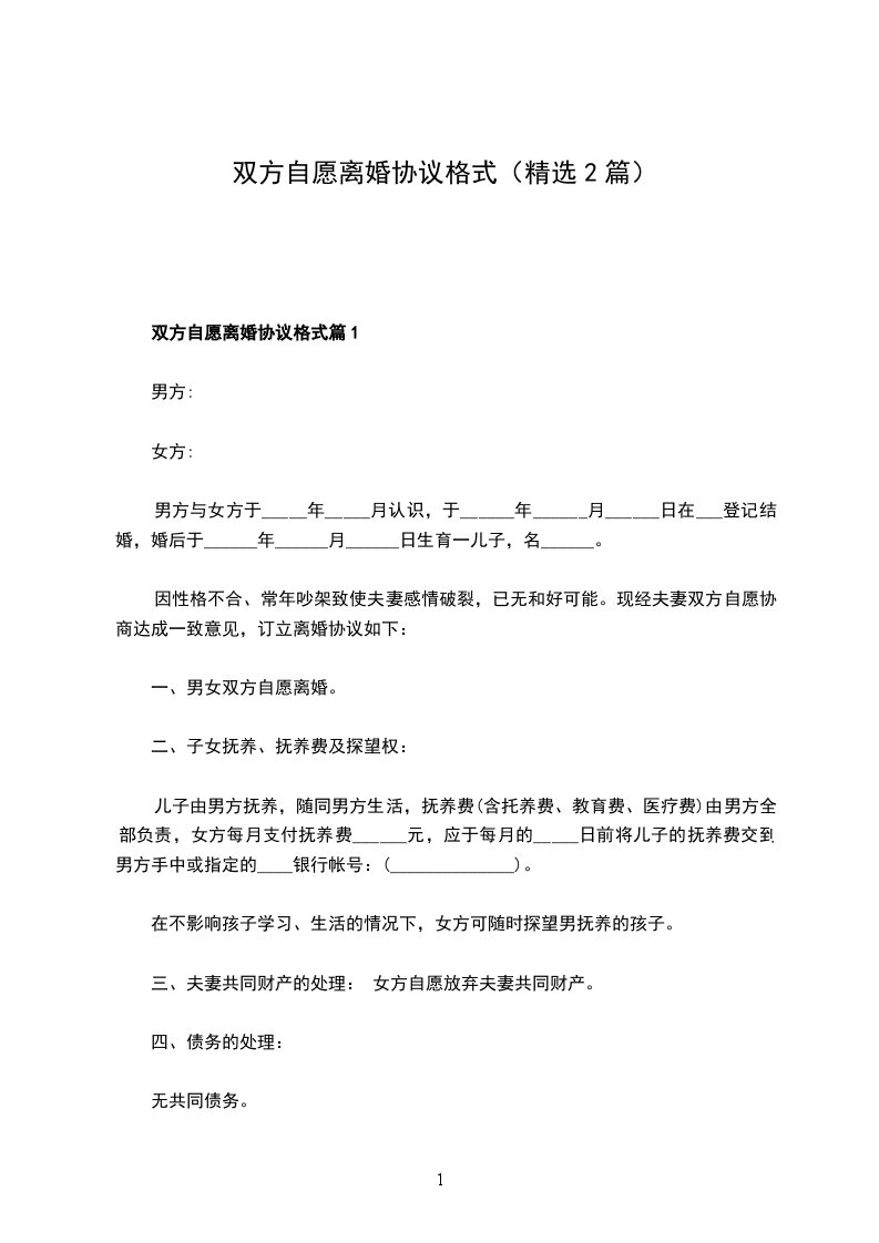 一、男、女双方自愿离婚。