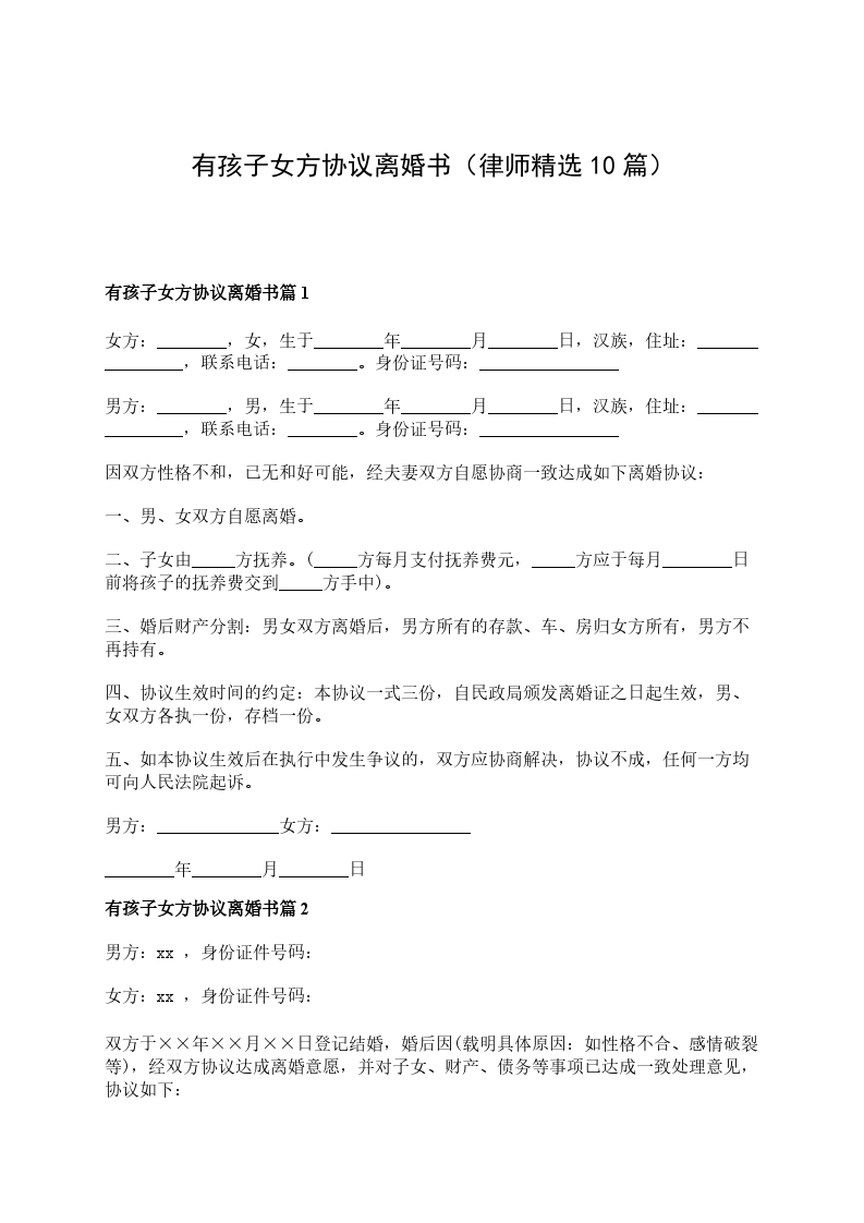 7.本协议一式三份,男女双方各持一份,婚姻登记机关存档一份。