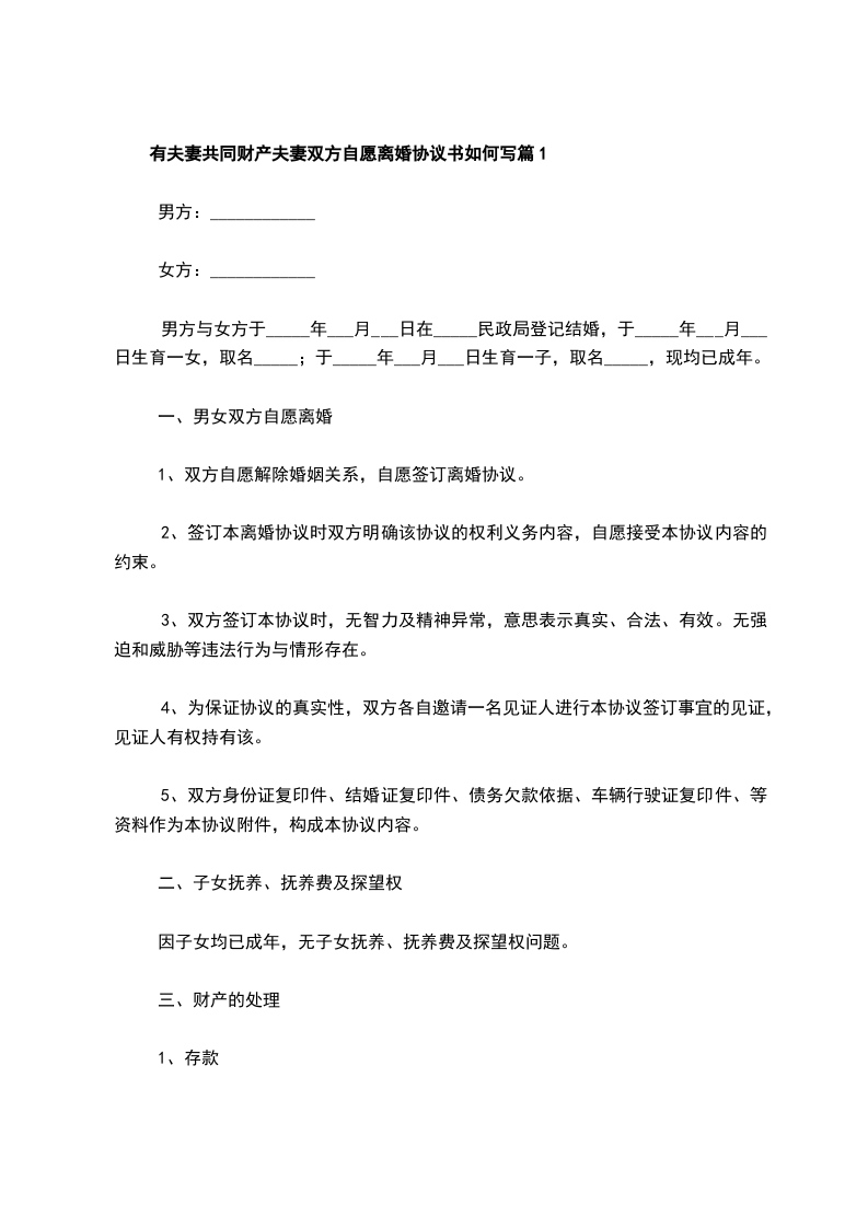 有夫妻共同财产夫妻双方自愿离婚协议模板篇1