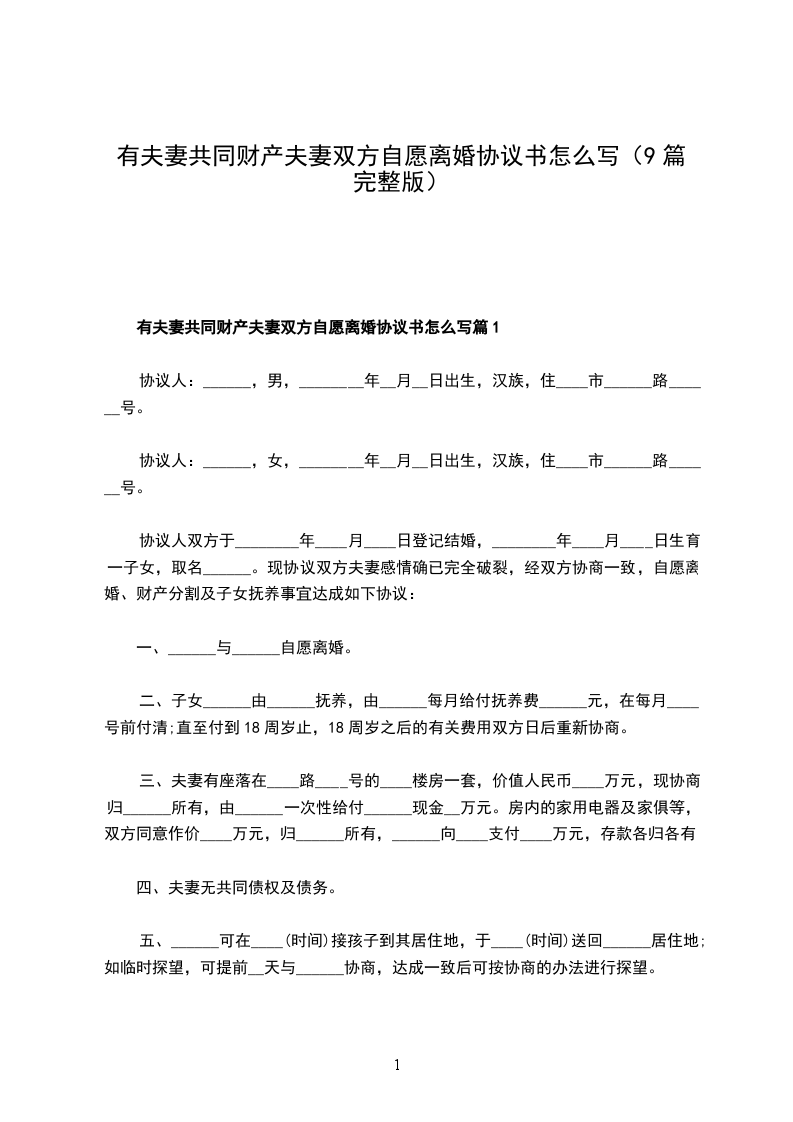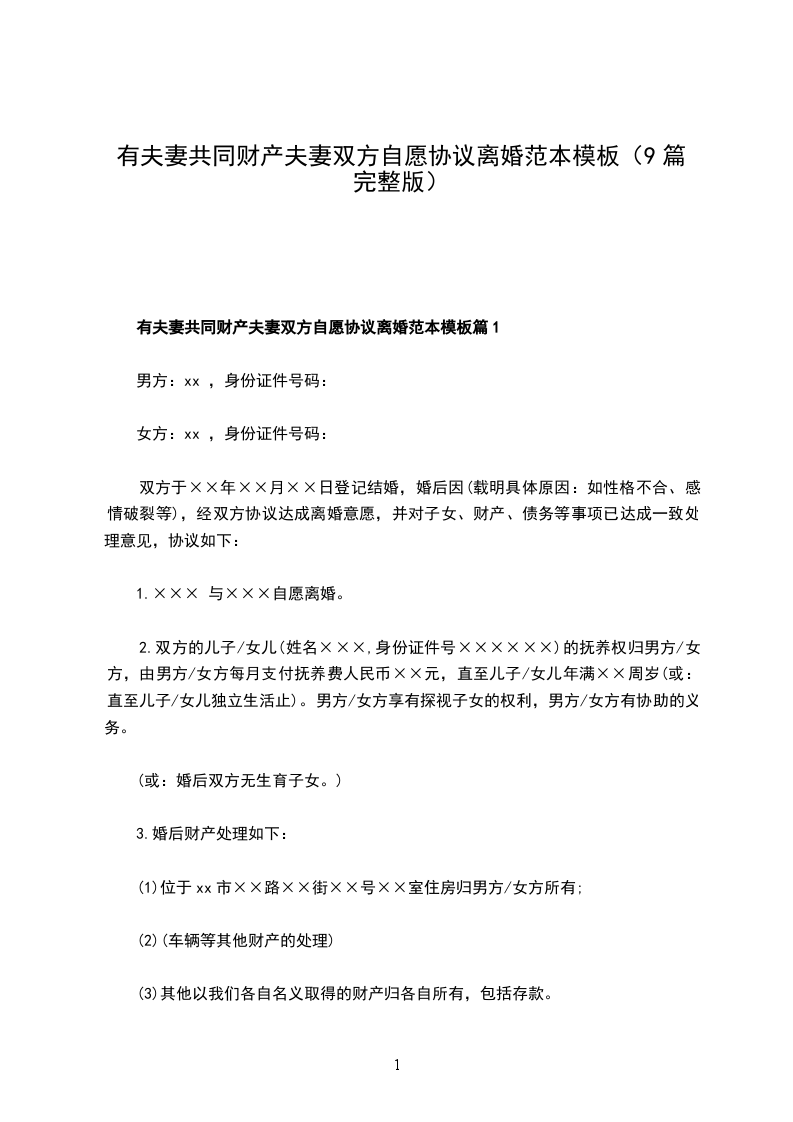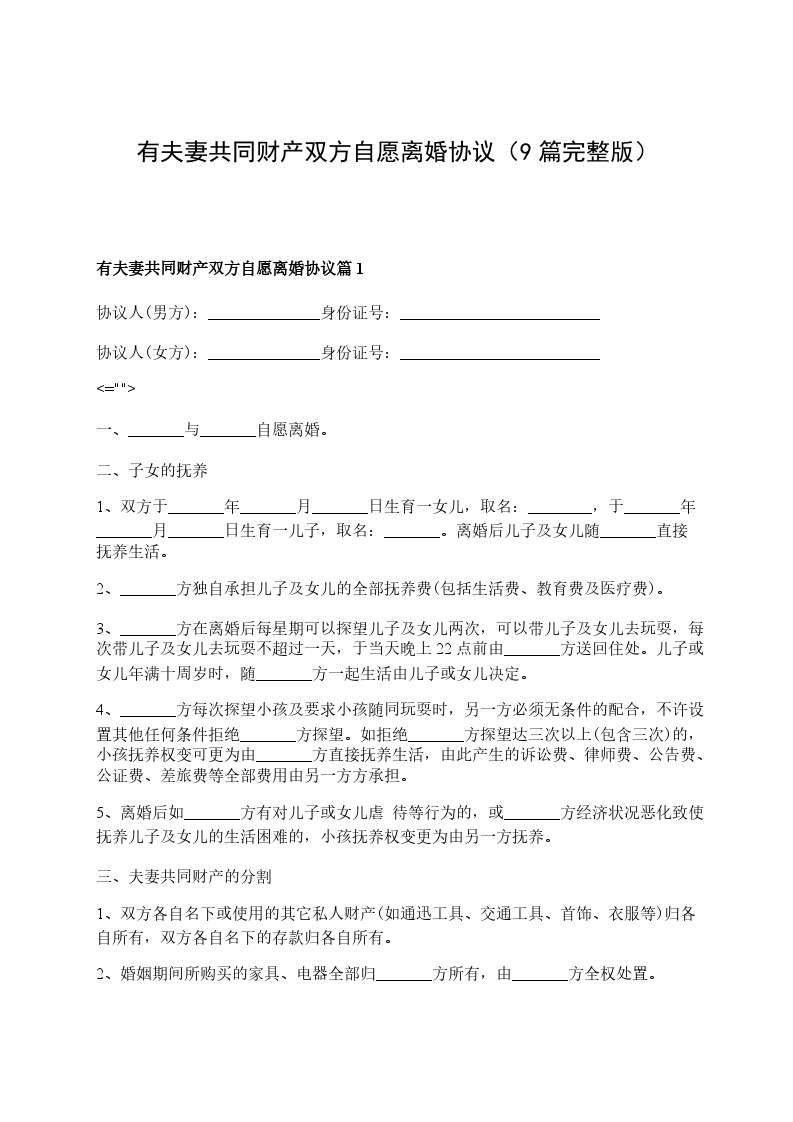 协议人甲方乙方双方于______年______月______日在__________________办理结婚登记手续。______年______月______日生育儿子______,因协议人双方性格严重不合,无法继续共同生活,夫妻感情且已完全破裂,现双方就自愿离婚一事达成如下协议: