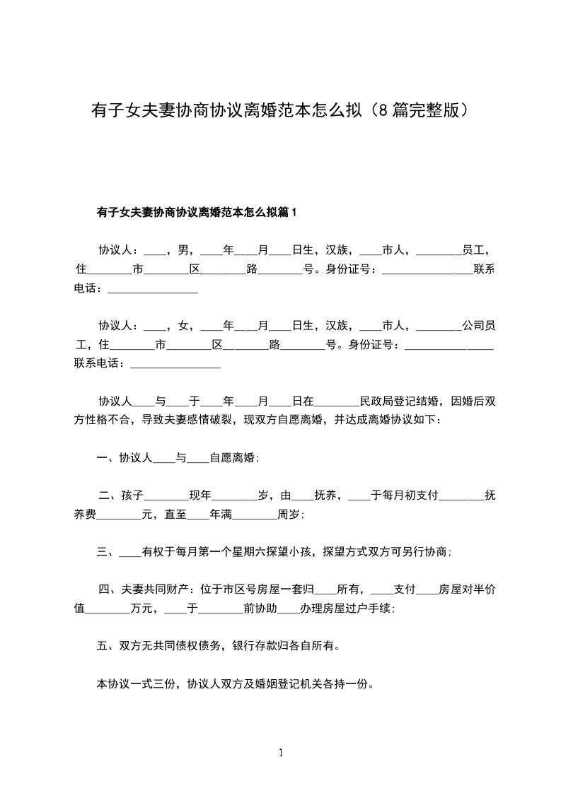 有子女夫妻协商协议离婚范本怎么拟篇5