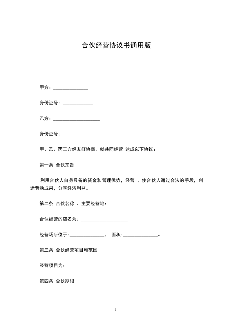 第一条 合伙宗旨